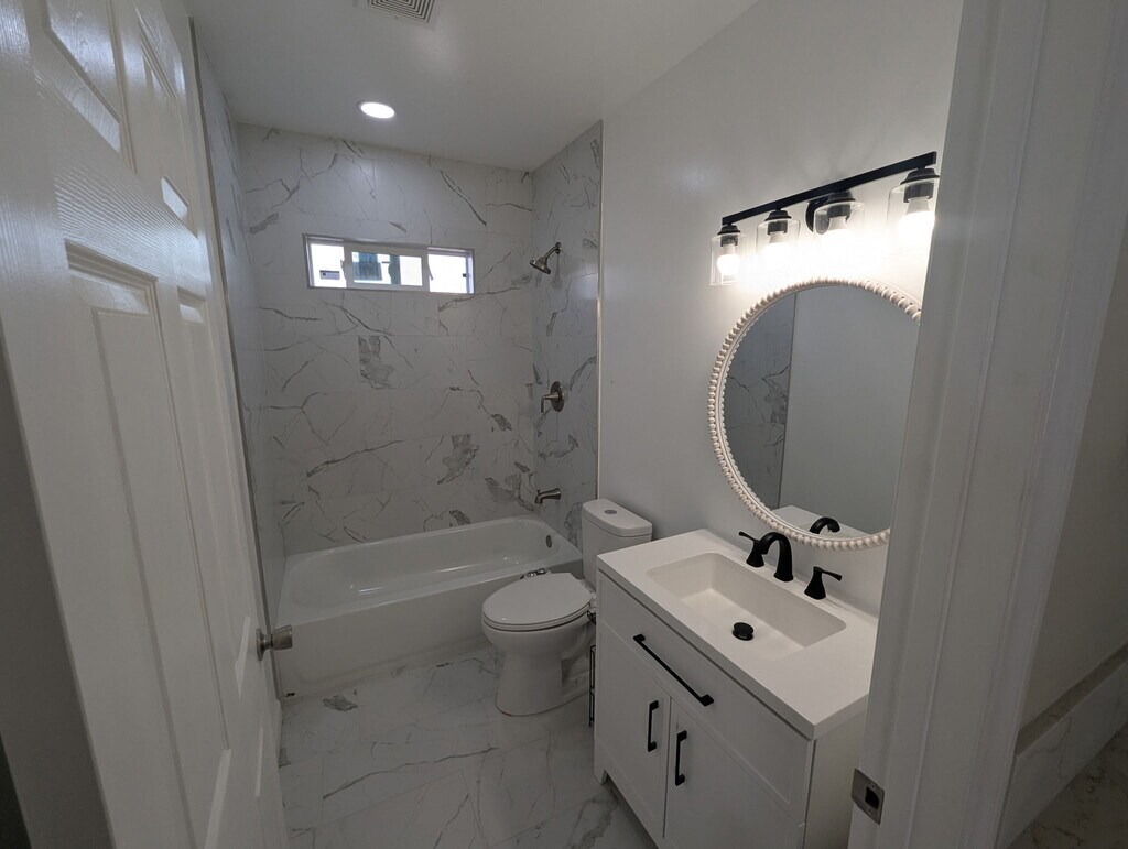 4823 1/2 5th Ave, LA. Be the first to rent this new 2025 newly constructed Jr. ADU, offering a modern 1 bedroom / 1 bathroom layout designed for comfort, style and efficiency. This thoughtfully designed home features an open concept living and bedroom area with contemporary finishes throughout. Enjoy the convenience of new appliances that include an in-unit washer/dryer, stove, microwave and refrigerator, central air and heat for your comfort. The bathroom is upgraded with a modern bidet. Located in a quiet residential neighborhood. This unit offers privacy while still being close to schools, shopping, dining and everyday conveniences. (bedroom and living area photos are virtually staged)
