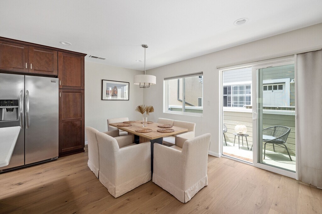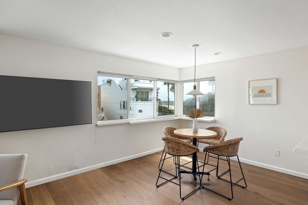 Beachside Retreat - Steps to the Beach! This fully furnished retreat awaits you! Located steps from downtown Hermosa Beach and all the fine eateries, boutiques, and coffee bars. Recently updated, this 3 bedroom plus office/4th bedroom offers hardwood floors throughout, new furnishings and all the necessary amenities. Enjoy ocean views from your living room with ample seating and a 65" flat screen TV. The kitchen is fully equipped and the dining area seats up to 8. There is also a balcony with a BBQ and lounging area which overlooks the shared patio. Enjoy your morning cup of java or tea at the breakfast bar gazing out to the ocean. All 3 bedrooms are located on 2nd level - Primary bedroom with private bathroom. 2 additional bedrooms with shared bathroom. Entrance level - you will find your office/4th bedroom and access to 2 car garage - 4 car parking total included with this home! Furnished Rental - Flexible Terms - Call today! Great Monthly Rate through May 31st, 2026!