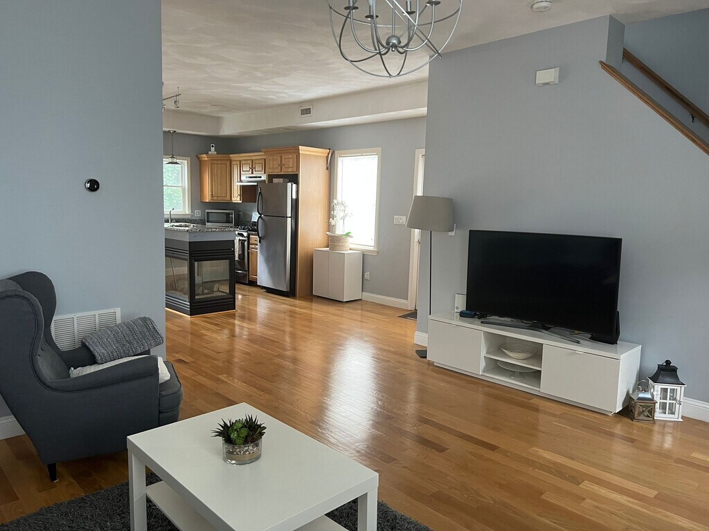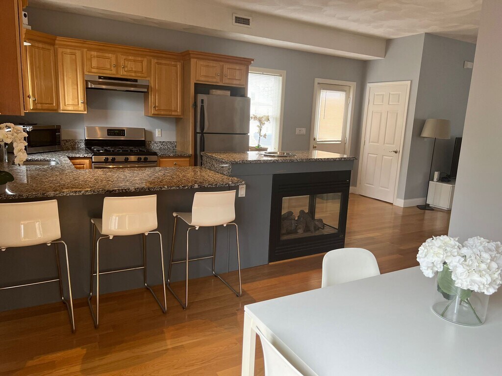 Alquiler a corto plazo. Un dormitorio completamente amueblado y renovado. 1,5 baños, casa de dos niveles. Convenientemente ubicado en North Salem, a sólo minutos del centro de la ciudad y con fácil acceso a las autopistas. Cerca de varios hospitales y centros comerciales (North Shore Mall, Liberty Tree Mall, etc.). Techos altos hasta el exterior. Primer piso: Gran cocina abierta con nuevas encimeras de granito y chimenea a gas. Lavavajillas, horno de microondas y refrigerador grande. Destaque la amplia habitación y el comedor. Armario y un baño para este piso. Balcón trasero con barbacoa. Segundo piso: Dormitorio principal con vestidor, escritorio, televisor y baño principal completo con bañera y ducha. Lavadora, secadora y armario de almacenaje en este piso. La exposición hacia el sur proporciona mucha luz desde el anochecer hasta el amanecer. Totalmente equipado con todos los accesorios necesarios. Termostato Nest: televisor Samsung curvo de 55 pulgadas en la sala de estar, televisor Samsung de 32 pulgadas y ventilador de techo en el dormitorio. El alquiler mensual incluye servicios públicos (gas, electricidad, agua, etc.). El cargo por limpieza de mudanza es de $250. Eliminación de nieve en las escaleras por parte del arrendatario. Estacionamiento disponible en la entrada trasera. El precio por mes es para ocupación INDIVIDUAL (cargo adicional para 2). No se permite fumar en interiores. Solo se alquilan de forma temporal, se permiten estadías de 30 a 90 días con estadías más largas si se autorizan previamente. Se permiten mascotas pequeñas bien comportadas (cargo adicional) NO alquilo este apartamento.- ¡Bienvenido a su hogar temporal lejos de casa!