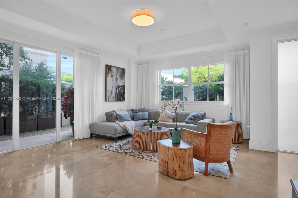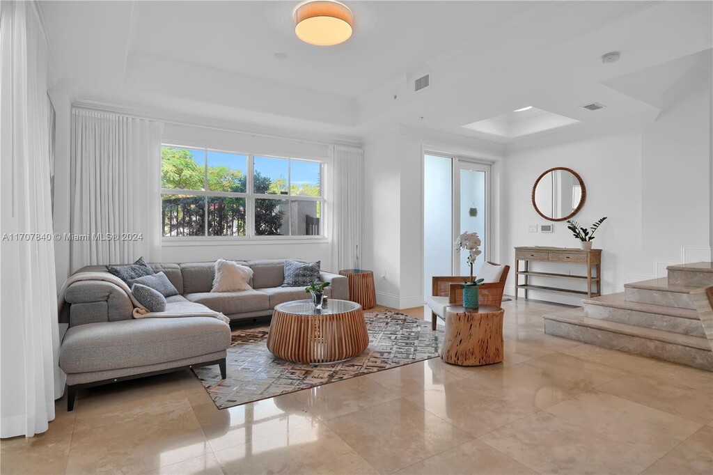 Be ready to live in the most walkable part of Coral Gables in this gorgeously furnished 2 story, 2800 square foot condo! This corner unit boasts an ample entry with a grand staircase and a living and dining area surrounded by windows and doors that offer beautiful light and open to a cozy patio and several balconies. There's a large family room adjacent to an eat-in kitchen with several pantries as well as a comfortable half-bath. Upstairs, the spacious master bedroom contains two walk-in closets and a large bathroom with a jacuzzi, as well as a large balcony. The second and third bedroom contain a walk-in closet and a balcony, and each has its own bathroom. Laundry facilities are found upstairs. 2 garage parking spots are yours and 2 additional resident zone parking decals are available.