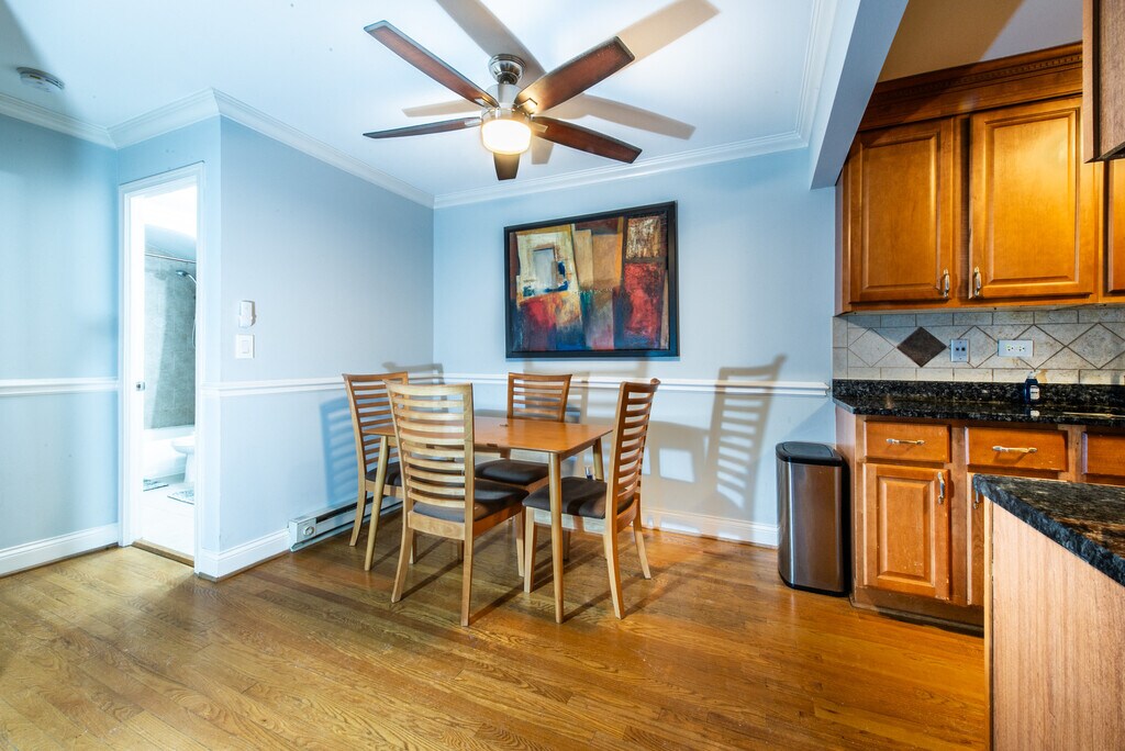 Beautiful, updated 1-bedroom, 1-bath condo located in a Prime Norridge location! Situated on the second floor, this light-filled unit, East exposure, features a bright and airy living room, dining area comes complete with table and 4 chairs. Hardwood floors throughout, and a stylish kitchen with stainless steel appliances and granite countertops. The oversized bathroom, spacious bedroom offers a walk-in closet for all your storage needs. Move-in ready. Furnished. 2 Parking spots. Enjoy the convenience of on-site laundry. Clean, secure building with extra storage unit. Near public transportation: Cumberland Blue Line/CTA station. Just minutes from O'Hare Airport, major highways, Fashion Outlets of Chicago, and Rivers Casino. An ideal blend of comfort, nature, and convenience!