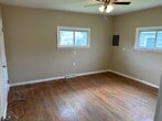 Spacious 3BR/1 BA house with attached garage and large front and back yard (with deck). Completely remodeled bathroom and kitchen, brand new AC and furnace, new overhead garage door, upgraded plumbing, electrical, and lighting. Entryway has large walk in closet attached. Washer/dryer hookups in large utility area off of the kitchen with plenty of storage and counter space. Hardwood floors throughout living areas; new LVP in kitchen and bath (pics show condition before final cleaning). Owner will consider sale of house in addition to lease with purchase options. Please only inquire if your monthly income can meet a minimum of 3x rent.