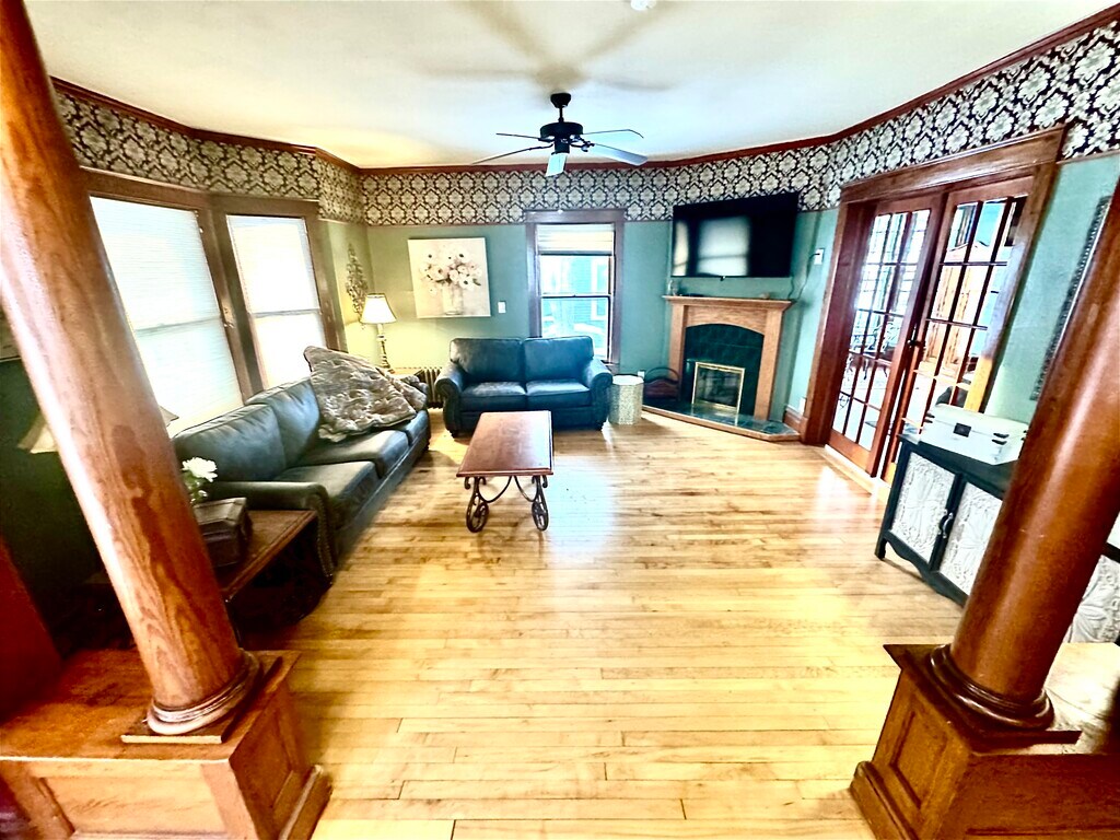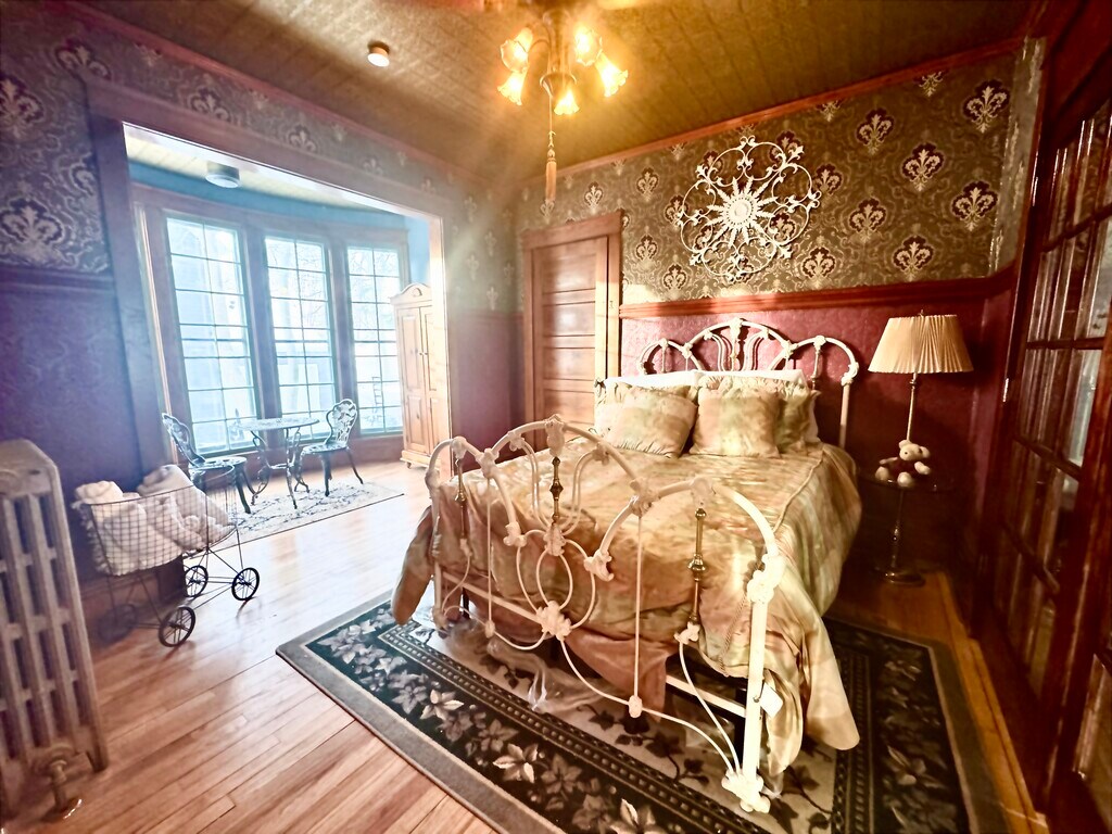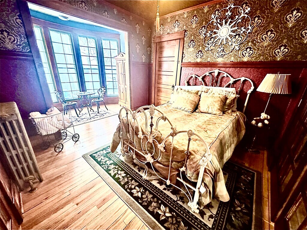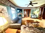 This historic charmer combines modern kitchen and bath amenities with decadent dining, living and home details from the Rockefeller days. Speaking of Rockefeller imagery, the beautiful Pauquette Park offers a skating rink, pond, walking gardens, playground and river views just blocks away. We have added a main floor suite with in room breakfast nook and expansive windows, walk in shower with handicap chair if needed and a full bed. Main floor also features a newly updated butler's pantry and kitchen, and historically detailed rich dining and living area with hardwood floors. Upstairs there are four additional bedrooms and a full bath with the deep old fashioned soaking tub (can also shower). Five TVs throughout the house in bedrooms and the living room. This home is ideal for a multi-generational family or group who needs lots of separate sleeping spaces. The basement level also has new front loading laundry and an exit door from this level with additional unfinished, but expansive space. (Depending on start date, length of stay and client needs we can potentially have a third full bathroom complete on the basement level).