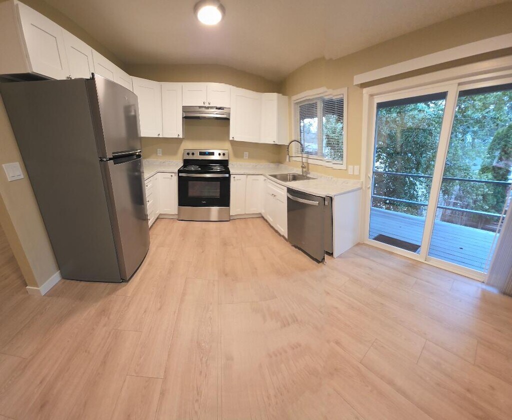 We have One 850 sq ft. Fully Remodeled Two Bedroom, One Bath Unit available for rent. This upstairs unit is located in a quiet 4-plex, near Evelyn Schiffler Park, in the Beaverton area. All utilities are included in the rent amount- Water, Sewer and Garbage. This unit has a large deck with a washer/dryer hookup. EVERYTHING in this unit is BRAND NEW. There is NOTHING that has NOT been replaced. THIS FULLY REMODELED UNIT HAS THE FOLLOWING: New Light Oak 12mm thick Laminate Flooring throughout unit with White Trim Molding (NO CARPET),New Soft Close White Kitchen Cabinets, New Kitchen Countertops, New Sinks, New Toilet, New Faucets, New Plumbing, New Bath Vanity, New Bath Tri-Fold Mirror, New Shower Doors, New Shower Surround, New Shower Fixtures, New Forced Air Heaters, New White Electrical Outlets and Light Switches, New Light Fixtures, New Vinyl Windows and New Vinyl Patio Sliding Door, New Blinds, All New Stainless Steel Appliances (Fridge, Range & Dishwasher), New Paint. Please call five-zero-three-three-two-one-five-one-nine-zero to schedule an appointment to view the unit or you can email me if you have further questions. This unit is available for rent immediately for $1795 per month (water, sewer and garbage are included in that rent amount. We're also offering this rental special: 1. The $35 application fee per adult will be refunded to all accepted tenants that take the unit. We will refund up to 2 application fees. The following amenities are included: 1. Water, Sewer and Garbage are included in the rent amount. 2. Fully Remodeled Unit-EVERYTHING IS BRAND NEW and listed above. 3. Washer/Dryer hookups. If you don’t own your own W/D we can rent you the set for an extra $100/month. 4. About a 1/4 mile to the largest Park in Beaverton- Evelyn Schiffler Park 5. Three miles from Washington Square Mall-one of the largest in the Portland area. 6. Very close in Beaverton- only 2 miles from Hwy 217 7. Close to grocery stores, several convenience & specialty stores. 8. We do accept dogs & cats. The unit is located at 5055 SW Menlo Drive # 4, Beaverton, Or. 97005. This unit rents for $1795 per month (water, sewer and garbage included in that rent amount) Directions: Take the Allen Blvd exit off Highway 217 and head west (towards Murry). Turn right (north) on SW Menlo Drive (light street). Drive down Menlo Drive until you come to the first stop sign (6th St.) After you go thru the stop sign it will be the first building (4-plex) on your left- 5055 SW Menlo Drive # 4, Beaverton. PLEASE MAKE A COPY OF THIS AD SO YOU'LL HAVE THE DIRECTIONS and ALL THE INFO ON THIS APARTMENT FOR RENT. If you are interested in renting this unit or if you have further questions you can either email or call me at five-zero-three-three-two-one-five-one-nine-zero on my voice pager (leave your name & phone # & I'll call you back immediately). The voice pager is the quickest way to reach me. Please mention where you saw my ad. Thanks, Scott