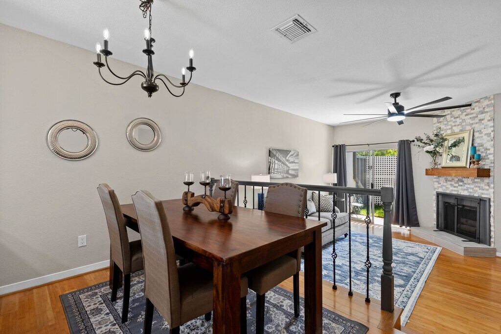Move-in ready two story condo with two bedrooms and one and a half baths. This updated home has an open layout that connects the dining area, kitchen, and living room with a cozy stone fireplace and custom mantle. The interior has fresh paint, solid wood shutters, a new 2024 HVAC system, new flooring, new ceiling fans, updated décor switches with USB charging plugs, LED recessed lighting, and new fixtures throughout. The kitchen feels modern and bright with solid wood cabinets, quartz countertops, new appliances, soft closing hinges, and a stainless steel sink with a commercial grade faucet. Both bathrooms have been completely remodeled with new vanities, granite countertops, updated tile, and all new fixtures. Bedrooms are a great size and the second floor includes a private balcony. Outside, the condo offers a comfortable back patio that works well for relaxing or hosting friends plus two parking spaces located directly behind the unit. The location is incredibly convenient with quick access to 610 and I 59 in Bellaire. It is just minutes from the Galleria, close to the upcoming Bellaire City Center, grocery stores, highly rated schools, restaurants, parks, and more. A lovely place to call home.