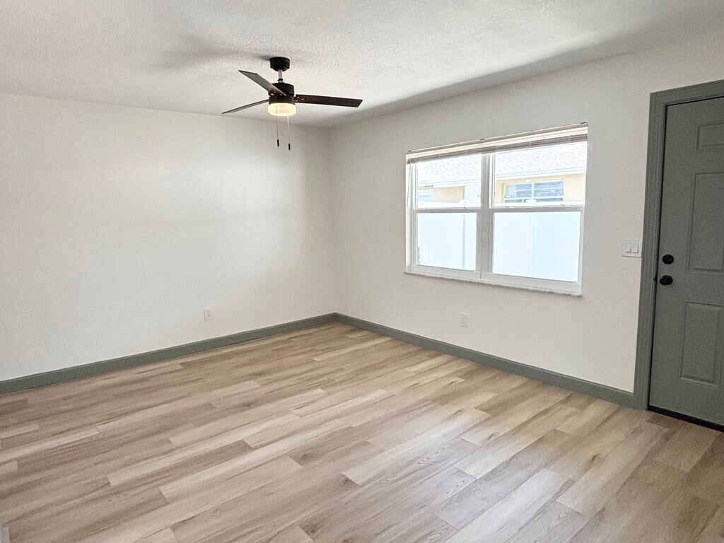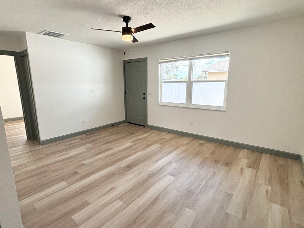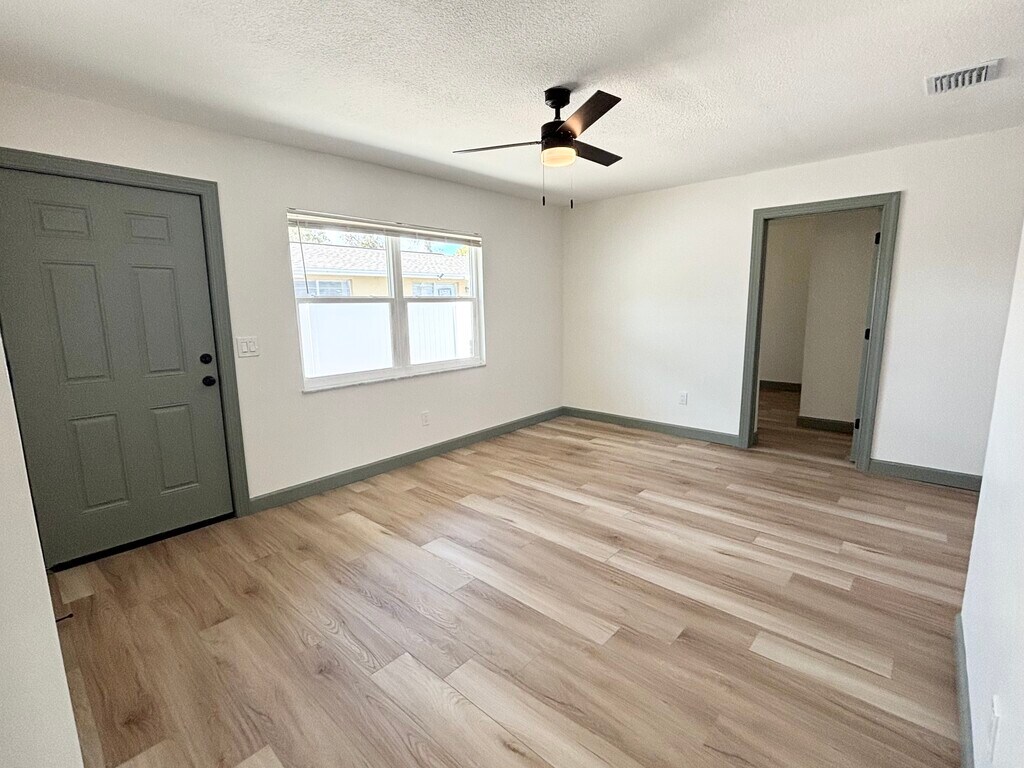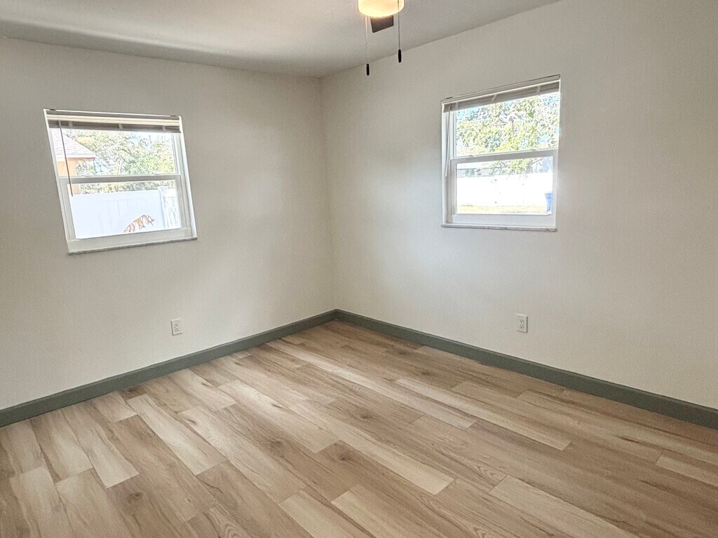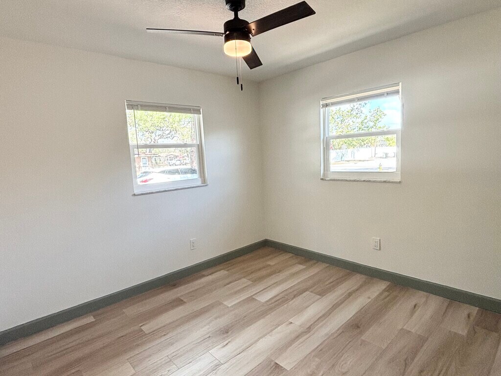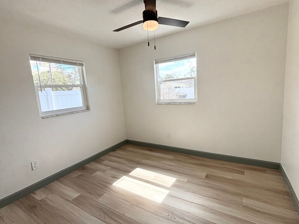 Move-in ready fully renovated duplex offering 2-bedroom and 3-bedroom floor plans, featuring modern finishes and waterproof luxury plank flooring throughout. Bright, open layouts with updated kitchens including new appliances (refrigerator, stove, dishwasher). Central AC and private entrances provide comfort and privacy in each unit. Energy-efficient upgrades including solar panels and a solar-powered hot water system help keep utility costs low. Residents enjoy shared on-site laundry with washer and dryer included and dedicated off-street parking. Both units feature private fenced outdoor spaces and concrete patios, perfect for pets, outdoor seating, and entertaining. The 3-bedroom unit also includes a storage shed for additional convenience. Pet friendly. Conveniently located in St. Petersburg, close to Downtown, Tampa, and the Gulf beaches, offering easy access to shopping, dining, entertainment, and major commuter routes. Ideal for families or professionals seeking a modern, upgraded, and well-located home.