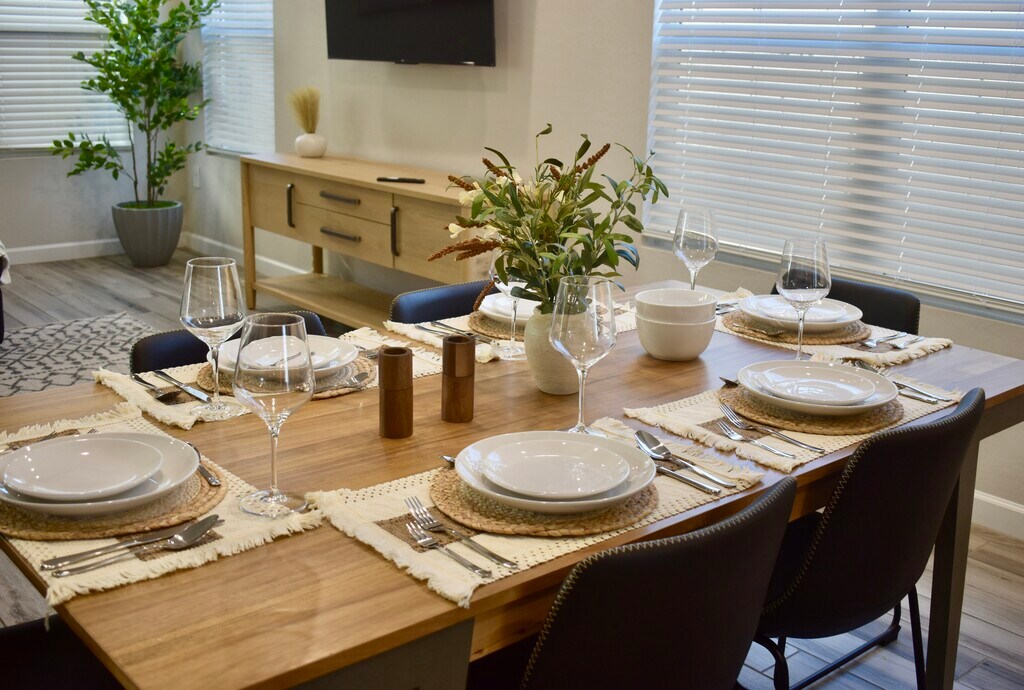 AVAILABLE MAY 2026. MID AND LONG TERM AVAILABLE. Experience elevated living in this beautifully furnished, newly built luxury home in the heart of North Scottsdale. Thoughtfully designed for both relaxation and functionality, this two-story, 3-bedroom, 2.5-bath home is perfect for medical travel or extended recovery, relocating families and professionals, especially nurses, corporate guests needing monthly stays, or visitors in town for events like Barrett-Jackson, TPC tournaments, or the Arabian Horse Show. With 1,832 square feet of bright, modern space and room for up to six guests, every corner offers comfort, privacy, and convenience. The open-concept main floor features hardwood floors and a stylish living area with a comfy sectional and smart TV for easy downtime. The adjoining dining area features seating for six and seamlessly flows into a gourmet chef's kitchen, complete with quartz countertops, smart appliances, a gas range, a built-in microwave, a pantry, and all the essentials for cooking at home. Upstairs, you'll find soft carpeting and three fully furnished bedrooms. The spacious primary suite features a king bed and a spa-style bath with double sinks, a walk-in shower, and a private toilet room. The two guest rooms, each with a queen bed, are comfortable and fully equipped, and a double-vanity bath with a tub/shower combo serves them well. These two secondary bedrooms have a Jack-and-Jill bathroom, offering a convenient and functional layout. Each bedroom has its own private entrance to the shared bathroom, making it perfect for family members or guests while still maintaining privacy.A full laundry area with a washer and dryer is also upstairs for added ease. Out back, a private oasis awaits, perfect for morning yoga or evening chats by the fire pit. Lounge poolside in multiple outdoor seating areas, take a dip in the pool with LED lights and sun shelf, fire up the BBQ, or challenge friends to a game of foosball under the covered patio. Tenants also enjoy full access to the gated Arabella community's resort-style pool, lap pool, jacuzzi, playgrounds, and bike/walk paths. Two cars garage and a private driveway that fits two cars, with additional guest parking available. High-speed Wi-Fi, smart TVs, and a dedicated workspace round out the list of perks. Pet-friendly with approval. Located just minutes from Scottsdale Quarter, Kierland Commons, Desert Ridge, TPC Scottsdale, and leading medical centers such as Mayo Clinic and HonorHealth, this home is a true hub for both comfort and connection. Whether you're here for recovery, business, or downtime, this warm and stylish retreat is ready to welcome you. All stays include fully furnished accommodations and high-speed Wi-Fi. Tenant pay for utilities. Flexible terms are available, so please feel free to reach out to discuss your specific needs. If you are interested in a mid- or long-term stay, I'd be happy to connect and explore the best options for you. Community Perks: Set within a gated, luxury neighborhood that offers a year-round heated pool, a lap pool, and a relaxing spa. Enjoy peaceful walking trails, shaded cabanas, and a beautifully maintained central park perfect for unwinding. The area is quiet and upscale, surrounded by top-rated schools and a strong sense of community. Why Book With Us: We care about your stay, and it shows in every detail. This home is thoughtfully designed, beautifully furnished, and meticulously maintained to the highest standards for comfort and style. From booking to checkout, you'll enjoy a smooth, stress-free experience with responsive, friendly support every step of the way. This property is professionally cleaned and quality-checked to deliver a spotless, hotel-level experience with a personal touch. And if you need anything during your stay, our local team is nearby and ready to assist.