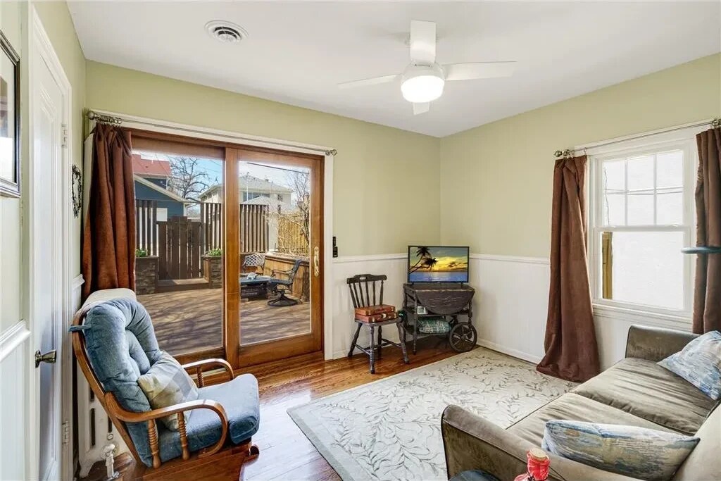 This beautifully updated and upgraded bungalow on the west side of South Minneapolis is now available and ready for you to call home. The open-concept kitchen features custom cherry cabinetry, under-cabinet lighting, a deep sink, and elegant soapstone countertops. A spacious living room showcases gleaming hardwood floors, a striking open-log gas fireplace, abundant natural light, and seamless flow into the dining area, perfect for everyday living and entertaining. The main level offers the convenience of two bedrooms, along with the comfort of heated floors in both bathrooms. Additional highlights include three heating zones, central A/C, and an irrigation system for easy maintenance. Step outside to enjoy the expansive backyard Trex deck with ambient lighting, ideal for relaxing evenings or hosting guests. The lower-level family room is perfect for movie nights and gatherings, complete with a coffee bar, while built-in ceiling speakers throughout the home provide an immersive sound experience.