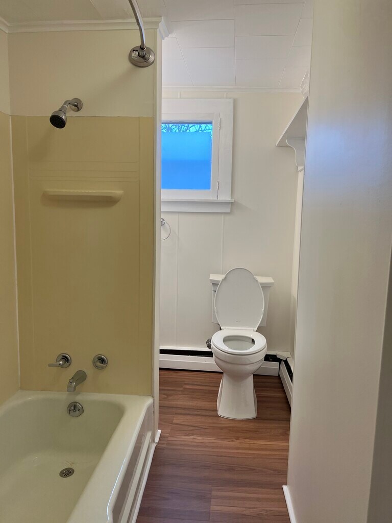 Great 3 bedroom apartment in a duplex. 3 bedroom. 1.5 baths. Spacious and comfortable common areas. Recent improvements with vinyl wood floors installed and updated appliance. Laundry in house, back porch and yard, garage space and off street parking. Convenient and central location downtown. Walkable, near parks, on bus route. Tenant pays utilities. Pets allowed.