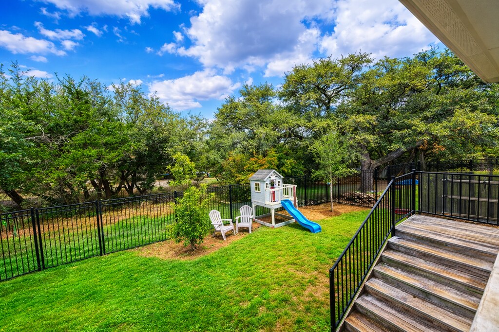 Greenbelt home with extended covered patio, private backyard, and 15-minute walk to the new Wildwood Springs Elementary. Experience modern Hill Country living in this stunning 4-bedroom, 3.5-bath home located in the award-winning Headwaters community of Dripping Springs. This spacious home features an open-concept layout with high ceilings, wood flooring, and smart home technology throughout. The gourmet kitchen includes stainless steel appliances and a large granite island perfect for entertaining or family gatherings. Relax in the luxurious primary suite with a spa-inspired bath, dual vanities, and a walk in closet. Step outside to a private fenced backyard with a covered patio and beautiful Hill Country views. Enjoy resort-style community amenities including two pools, splashpad, fitness center, playgrounds, hiking trails, and a clubhouse with social events year-round. Located just a 15-minute walk from the new Wildwood Springs Elementary School in Dripping Springs ISD, and approximately 30 minutes from downtown Austin and Austin-Bergstrom International Airport, this home offers the perfect blend of comfort, convenience, and Texas Hill Country charm. Available for move-in this spring. $500 move-in credit available with a 12-month lease signed by March 1.