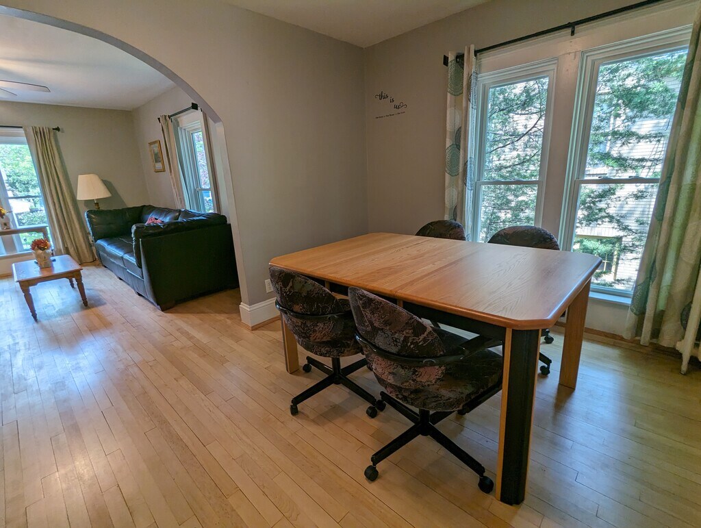 A mini-split was just added to keep this upper apartment cool in the summer. Full desk for working. Comfortable bedrooms. Situated in a great neighborhood within walking distance of the high school. Close to down town.