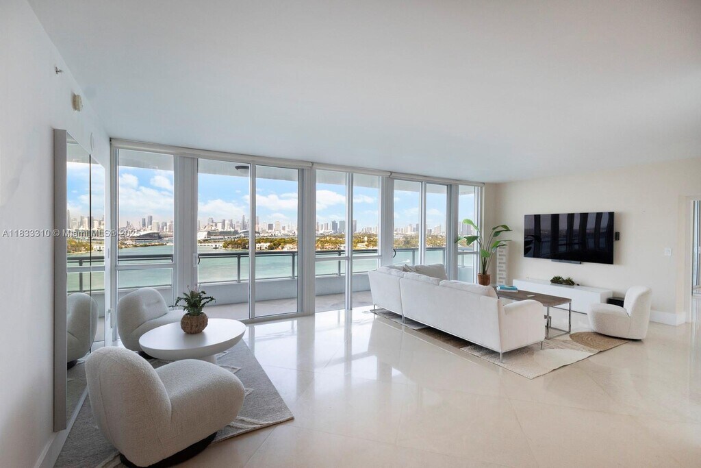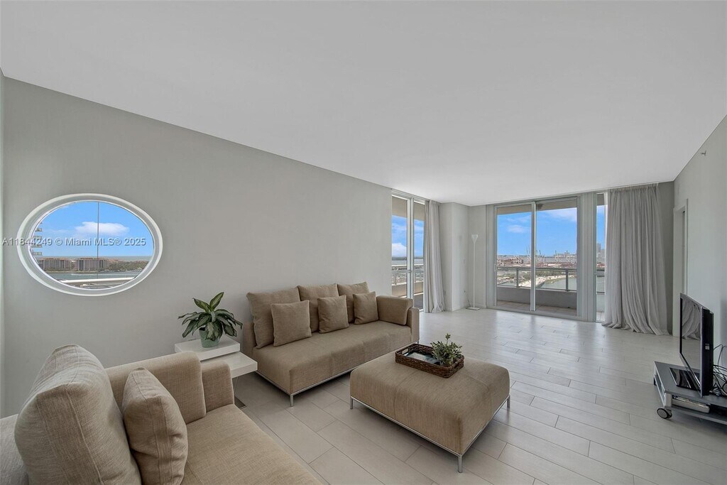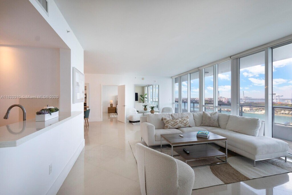 This is a unique furnished 2 bedroom with den condo at the Bentley Bay South Tower. The unit has beautiful direct views of Biscayne Bay. It has floor to ceiling windows throughout, so you can enjoy the beautiful water views from multiple rooms. The Bentley Bay is close to grocery stores, dining, and the South Beach neighborhoods. There is a beautiful pool, gym with updated equipment, front desk attendants, and valet services.