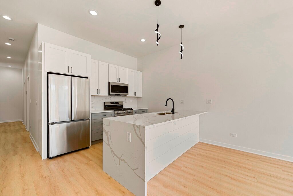 Refined New Construction Residence Welcome to 523 N. Lawndale, an exceptional 3-bedroom, 2-bath luxury apartment ideally situated in Humboldt Park. This newly constructed home offers a sophisticated living experience, featuring designer-grade finishes, sleek granite countertops, and expansive bedrooms filled with natural light. The spa-inspired primary suite boasts a private master bath, while in-unit laundry, a dedicated parking space, and a private rear deck provide effortless comfort and convenience. Located moments from Humboldt Park’s scenic green spaces, acclaimed local dining, cafés, and neighborhood boutiques, this residence also offers easy access to downtown Chicago, major expressways, and public transportation—making it ideal for both work and leisure. A rare opportunity to enjoy elevated city living in a vibrant, connected neighborhood.