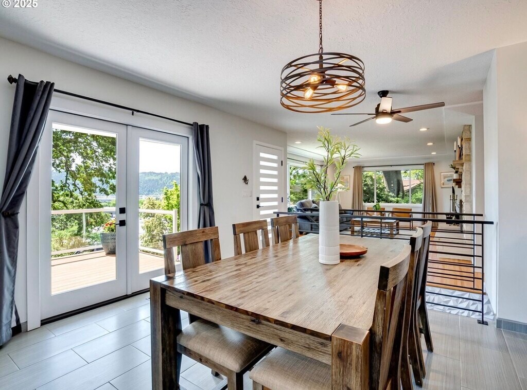 This unfurnished mid-century home has a lot of charm and is nestled into a friendly cul-de-sac hidden along the bluffs of the Overlook neighborhood. There are 3 bedrooms, 2 bathrooms, kitchen, living room and dining room upstairs with a wrap around lanai overlooking the Willamette River, Downstairs holds a living room, bonus room, bathroom, storage closet, galley kitchenette, 2 car attached garage with a washer and dryer and another lanai, There is a fenced backyard with easy access from the top floor, perfect for small children or pets.