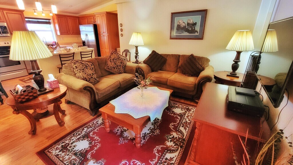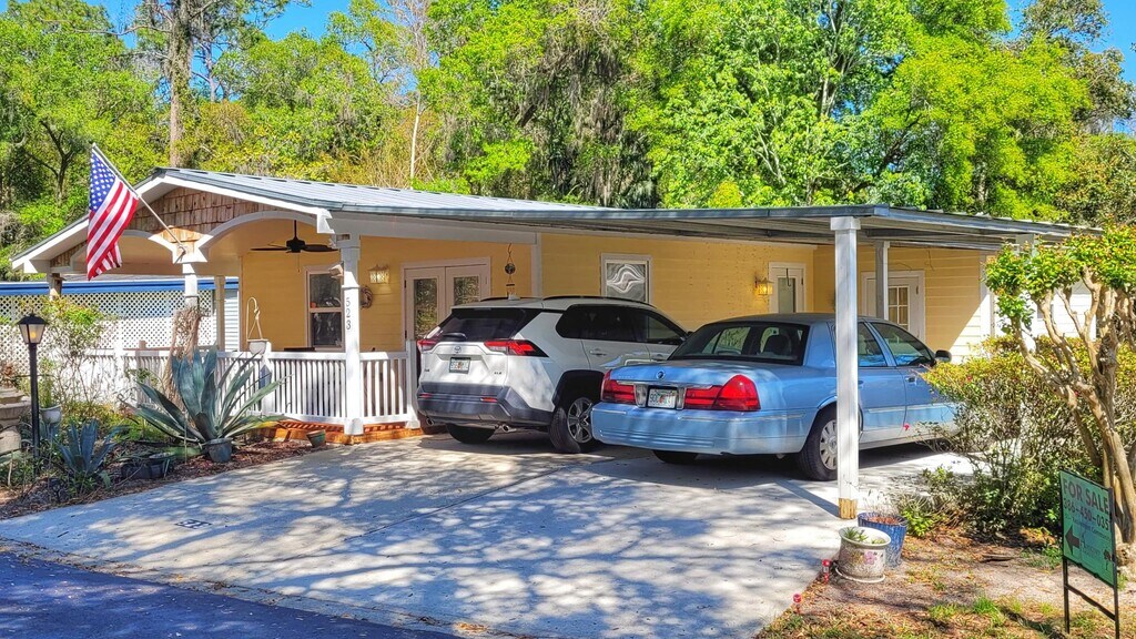 ENTICING HOME FOR RENT (must be 55 and over) .... This neat 3-Bed/2-Bath Manufactured Home is reasonably priced for renting, as well as rent with option to buy. The home offers the perfect blend of tranquility and convenience. Located in The OAKS 55+ community is just minutes from the charming boutiques, dining, and cultural downtown DeLand. This home is ideal for those seeking comfort, community, and carefree living. Inside, you'll find a bright, open floor plan with spacious living areas, a well-appointed kitchen, a private primary suite with en-suite bath, and 2nd and 3rd bedroom (home office) with full bath. The open porch is perfect for enjoying your morning coffee or relaxing in the evening breeze. The home’s exterior offers a 30-year life span standing seam metal roof, insulated windows & doors, utility room with washer and dryer, a spacious two-carport for 2 to 3 cars and wooded backyard. The home has 3 year old hot water heater and outside AC unit. Home was also insulated with closed-cell spray foam and insulation below the floor, providing low energy costs. New tenant/owner can enjoy access to a range of community amenities and social activities designed for active adult lifestyles, including pool, hot tub, shuffleboard, tennis court, and pickleball! Whether you're looking for a peaceful retreat or a place to thrive in retirement, this home delivers both. The Oaks includes night time security, year-round mowing, irrigation, Blue Stream Fiber internet, Direct TV!