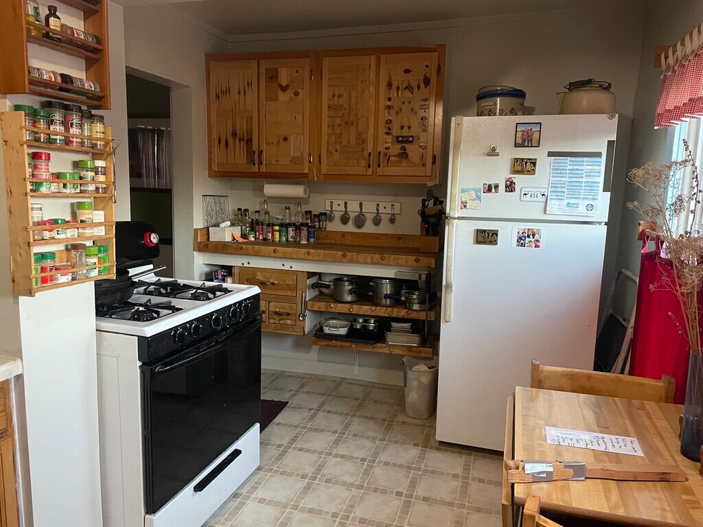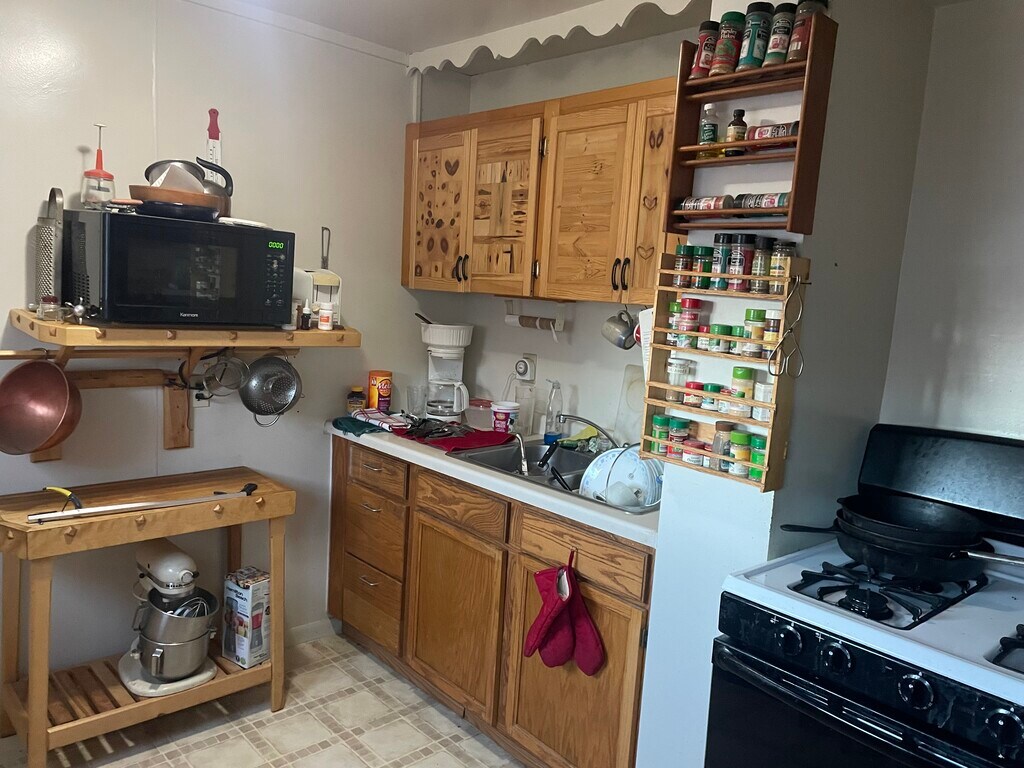 Cute little house, in the alley, street parking only. Basement with washer and dryer and storage. Living room, dining room, front porch, kitchen on main floor. Bedroom, bathroom with shower and office (or second bedroom) on second floor. Walk-in closet. Gas kitchen range, gas, furnace, small front yard.