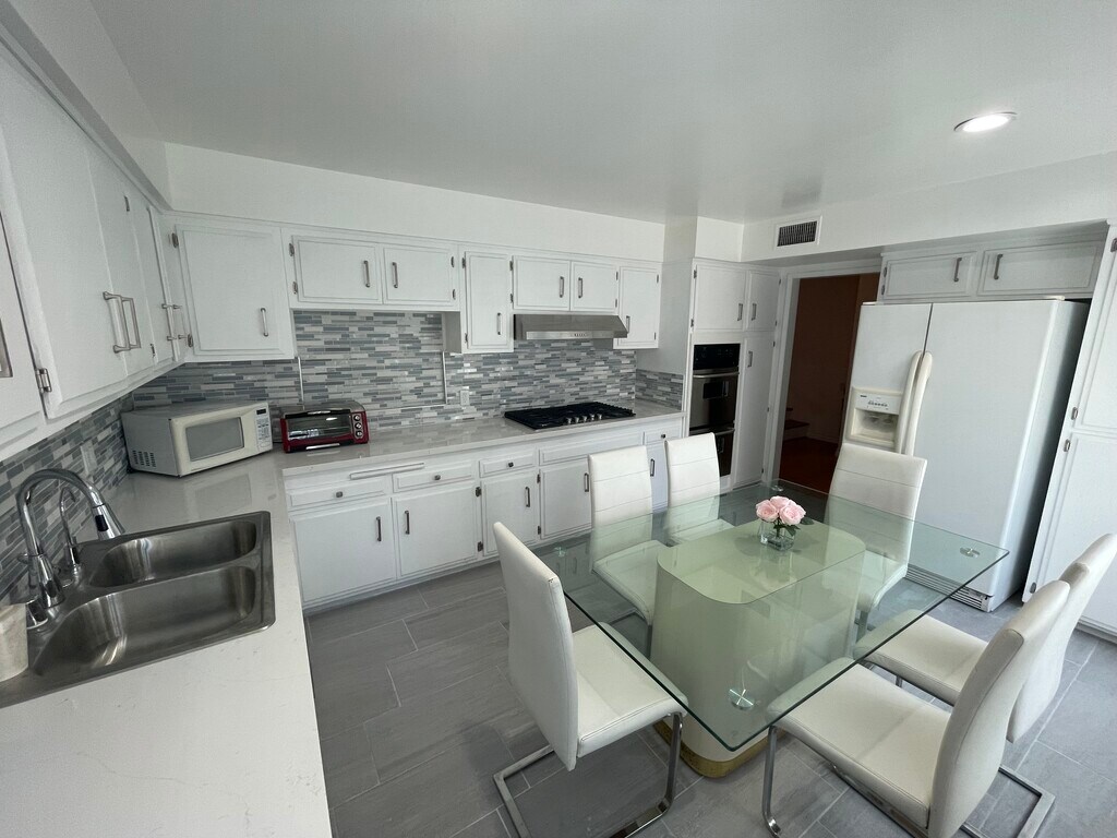 Charming Townhome in a great central location within walking distance to Ventura Boulevard, quiet neighborhood, gated community, fully furnished including 65 inch TV in the living room, 40 inch TV in the master bedroom and 35 inch TV in the kitchen, clean, large terrace with new barbeque ideal for entertainment, double car garage with remote and storage shelves, washer & dryer in the garage, clean, lots of sun, remodeled kitchen, Hardwood floors throughout except tile in the kitchen & bathrooms, recessed lighting, close to restaurants, shopping and temples, community pool, Jacuzzi and club house, children and pets friendly