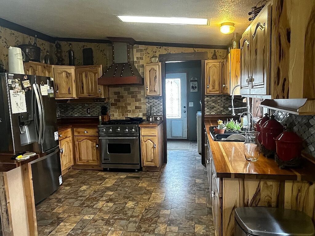 3 bedroom 2 bathroom home features custom cabinetry throughout the home. Newly remodeled Kitchen features Hickory Cabinets, Walnut butcher block countertops, custom made spice racks, and a large cast iron sink. Viking stove perfect for all your culinary cooking needs! Gorgeous Fully functional range hood.