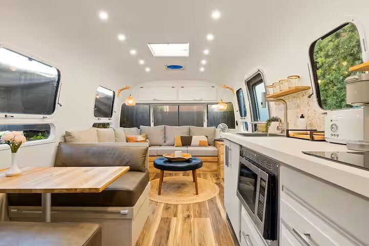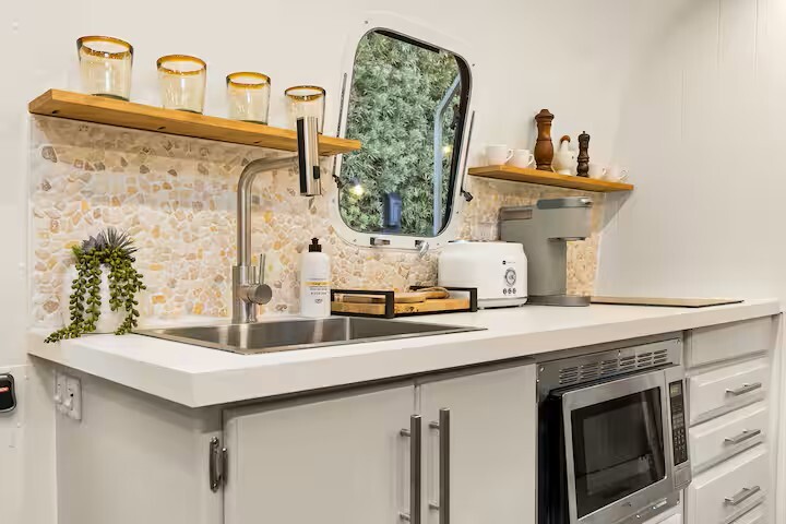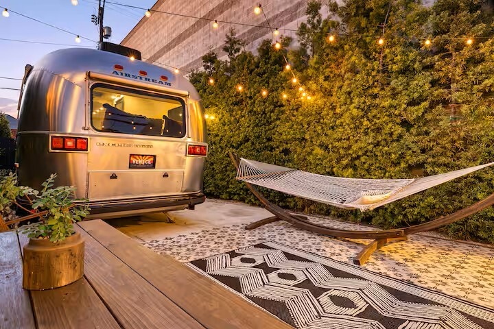 Step into a Venice Beach dream: a masterfully renovated 30' Airstream sanctuary just steps from Abbot Kinney Blvd. This unique urban oasis pairs vintage charm with modern luxury, featuring a plush queen bed, full kitchen, and designer bathroom. Beyond the Airstream, discover your private compound complete with a detached lounge, dedicated workspaces, and an enchanting outdoor paradise with cafe lights, hammock, and BBQ. Experience authentic Venice living in your own secure slice of paradise. **Fully furnished property ** Air conditioning Backyard Free parking on premises Kitchen Microwave Washer and Dryer WiFi and many more Owner pays all utilities, internet, yard service, trash Renter only pay rent