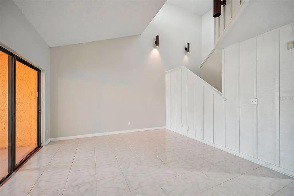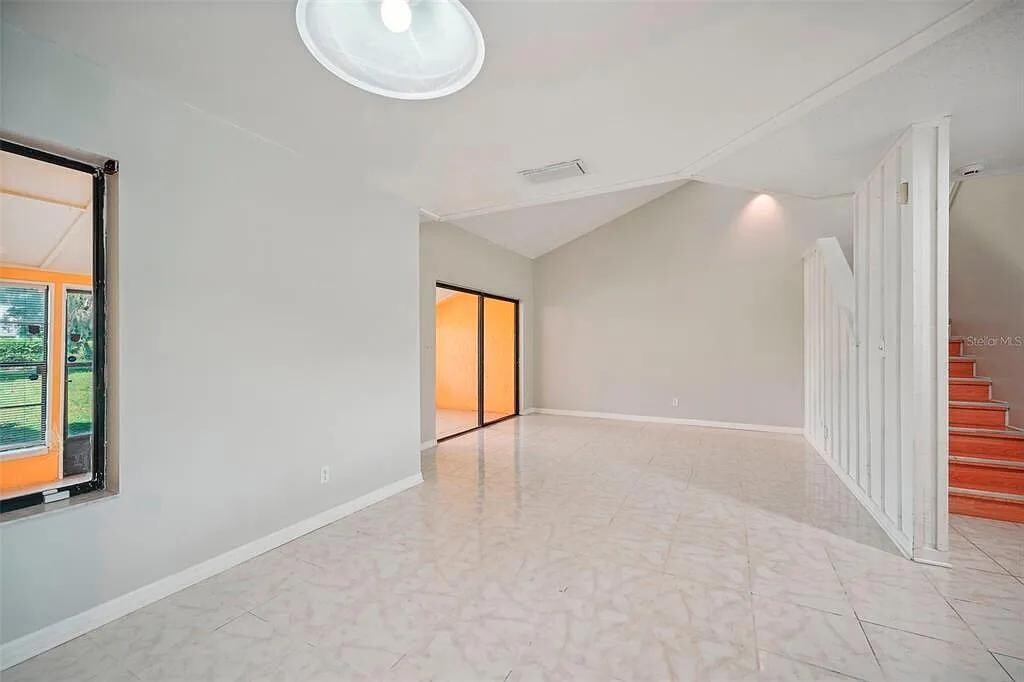 A charming two-story townhouse for rent in the Poinciana Golf Villas community, conveniently close to shopping and just steps from the community pool. This home features 2 bedrooms and 1.5 baths, with a living room/dining room combo boasting volume ceilings. The kitchen offers new granite countertops, a stylish backsplash, and new kitchen cabinetry, with a breakfast bar overlooking the dining room. The spacious Florida room, enclosed and perfect for cool summer evenings or enjoying the morning atmosphere, includes a large storage closet and could be ideal for an office. You'll find no carpets in this home, with tile in the main areas and laminate flooring from the staircase to the upstairs bedrooms. The generously sized bedrooms have ample closet space and a bathroom with decorative tile, and new cabinetry. A half bath is on the first floor. It also has a utility room with washer/dryer. The attached one-car garage is convenient. Section 8 vouchers welcome!