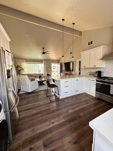 Newly renovated multi-unit, two-bedroom, one bath, front unit with two car driveway parking. Includes full patio, yard and half of two-car garage for storage. Open concept living room with high ceilings, central heating, and open kitchen with quartz counter tops, and marble backsplash. House will include dishwasher & stove. Tenant must provide their own fridge and W/D units. All utilities are included except for electricity. Tenant will solely pay electrical bill. Landscape, trash, water, and gas are covered. This is a shared property; tenant Must be respectful of back unit. This is a beautiful home in a great neighborhood; adjacent to beach cities, such as El Segundo, Manhattan Beach, etc.