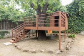 Charming SUSTAINABLE Cape Cod beauty on a LRG woodsy lot, almost 10K sq ft lot full of fun, adventure and greenery! Traditional 2-story home offers 3 bedrooms/2 baths upstairs, and 1 bedroom + 3/4 bath downstairs. Wood floors and updated new gas FP in elegant Liv Rm/Dining areas. Remodeled U-shaped kitchen w/dbl ovens, granite counters, clean white cabinets and HUGE BK area! Leading to patio with outdoor kitchen/BBQ/pizza oven to enjoy entertaining friends and family! Magnificent yard with mature trees and HOLY SMOKES a good old fashioned TREEHOUSE! Bring out your inner child and have a great time swimming in the warm solar-heated pool, clubbing in the treehouse, planting in the many flowerbeds and planter boxes. Probably the most kickass yard you've ever seen! Back to the house....upstairs master en suite has a lovely remodeled bath featuring separate tub and shower, great closets. Secondary bedrooms are nice size w/good closets & fans. But the YARD - the YARD is TO DIE FOR! Home has ten 250-watt solar panels to reduce power bills. Artificial turf in front and pool deck area to reduce water use. Tile and wood floors thru-out the house - no carpet. All mounted TV's are included! 220 volt electric charger for EV's. Close to Houses of Worship, busline, freeway and canyon access, yet a quiet rural country-lane sort of a block.