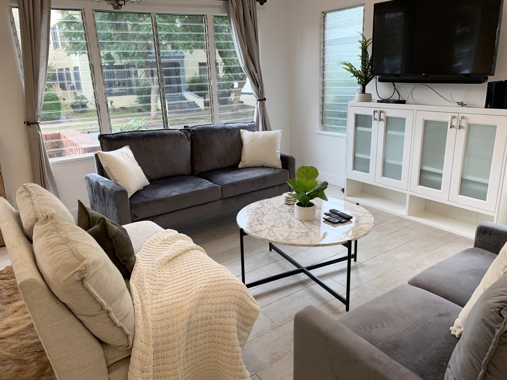 MEJOR UBICACIÓN en los Ángeles. Gire a la derecha en Fairfax y Melrose. Ubicado en un vecindario familiar tranquilo, pero a una poca distancia a pie de Grove y Melrose Arts District, sede de las mejores tiendas y cibercafé y el Flea Market. El recientemente renovado hogar es el primer piso de un dúplex; con tu propia entrada. Todos los nuevos, stain-less de acero inoxidable, que incluyen nuevos Lavadora y secadora en el apartamento. 3 habitaciones espaciosas y armarios, dos baños con duchas tipo lluvia. Las habitaciones son aproximadamente el mismo tamaño que una de otra. Se admiten mascotas. Ofrecemos un descuento en el precio para un contrato de arrendamiento de tres habitaciones, en esta zona, ya que se realizarán trabajos de construcción en el patio trasero durante las horas de trabajo por un par de meses. Los inquilinos deben estar bien con la construcción durante los días de la semana. Lo más probable es que desea finalizar el contrato de arrendamiento después del período de 12 meses para que ten esto en mente. Estacionamiento en la calle es un amplio.