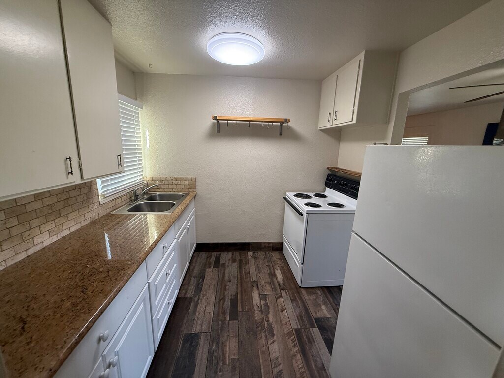 Discover the charm of this sought after college are. Cute and sharp 1 bedroom home on a tree lined street. New interior and exterior paint. Very clean. Perfect for those seeking a serene living space with all the essentials. Refrigerator, gas range, washer and dryer. Close to restaurants, entertainment and shopping Fenced backyard Includes garbage, gardener, water and pest control. NO pets, NO Smoking. CREDIT CHECK.