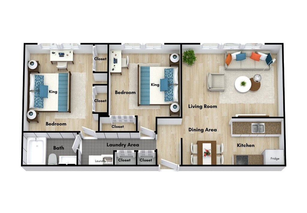 2 Dormitorios, 1 Baño, 950 pies²Disponible Apr 1Detalles de Diponibilidad