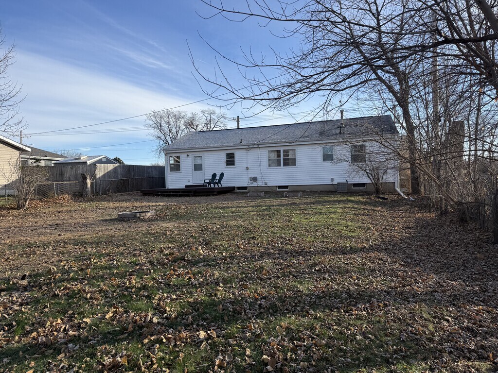 This fully furnished single-story home (with a basement) is designed to make short or mid-term stays comfortable and stress-free. With over 1,500 square feet of space, it's got plenty of room to spread out. The living room features a smart TV with Roku, a comfortable sofa, and extra seating, perfect for unwinding after a long shift. The kitchen is fully stocked with major appliances, cooking tools, utensils, and an island for prep space. There's also a dining table for four, so you're set whether you're eating in or working from your laptop. Each of the three bedrooms has its own closet and functional furniture. The main bedroom features a queen bed, blackout curtains, a dresser, and a desk, providing a workspace for anyone who needs it. The other two bedrooms each have a twin bed, and one has a dresser, great for extra guests or coworkers traveling together. The main bathroom has a shower/tub combo and a single vanity, while the half bath in the basement adds convenience. Downstairs, you'll also find a washer and dryer, along with a treadmill for those who want to get in a quick workout without leaving home. Hardwood and linoleum floors throughout ensure a clean and low-maintenance environment. Out back, there's a large fenced yard with a fire pit and a couple of chairs, making it a nice setup for relaxing in the evenings. The home features central air conditioning and heating, fast Wi-Fi, and all utilities are included. There's also a one-car garage and a driveway, so parking's not a problem. A small pet is welcome. Whether you're in town for a short contract, an extended assignment, or just need a comfortable place to land for a while, this place is set up to make life easy, clean, quiet, and move-in ready.