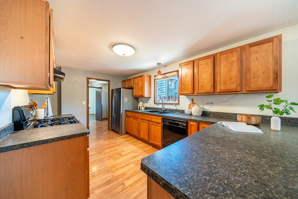Great home on the west side of Bend! Enjoy the convenience of walking distance to restaurants, trails, and the river. This charming home features an updated kitchen, new vinyl windows with a double lifetime warranty, fresh exterior paint, new flooring, and a full privacy fence around the property. The enclosed side porch offers a perfect space for entertaining, while the large driveway provides plenty of off-street parking (up to 5 vehicles). A unique bonus: the third bedroom has private access, making it ideal for a home office. Washer and dryer are included. Unlike many rentals in Bend, you’ll be renting directly from a local—not a property management company—ensuring clear communication and a more personal renting experience.