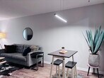 This stylish 2-bedroom, 1.5-bathroom property at 551 Courtwood Ln offers 845 square feet of living space and was designed with simplicity in mind for clutter- free living. The living room is an open concept with a tv console that also offers an electric fireplace for cozy evenings. The kitchen features a dishwasher and open shelving. Both bedrooms provide ample space, very comfortable beds, and have direct access to the bathrooms. The dual entry bathroom design is ideal for co-living. The property is fully furnished and smoke-free, ensuring a clean living environment. Pricing available upon request.