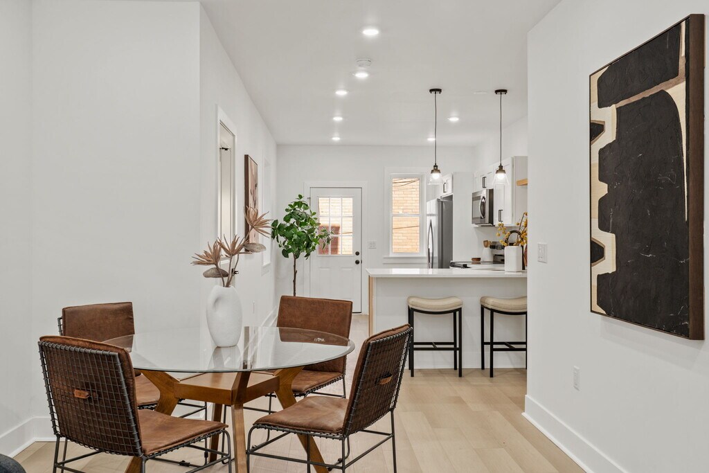 5525 Osage Avenue is a thoughtfully designed, fully renovated home where no detail was overlooked. The main level features an inviting living space with wide-plank white oak flooring, recessed lighting, and room for dining. The kitchen offers quartz countertops, a breakfast bar, two-tone shaker cabinets, ceramic subway tile backsplash, and a convenient powder room. Upstairs, you'll find three bedrooms and a full bath with glossy subway tile, porcelain flooring, and cohesive brass finishes. The primary bedroom is filled with natural light from three large front-facing windows. The finished basement adds flexible space for a home office, guest suite, or additional living area, along with laundry. A private backyard completes the home perfect for relaxing or entertaining. Commuting is effortless with multiple bus routes, 34 trolley and MFL. Neighborhood favorites like Toast Cafe, Out West, Booker's, Carbon Copy, and Cleo Bagels are all close by!