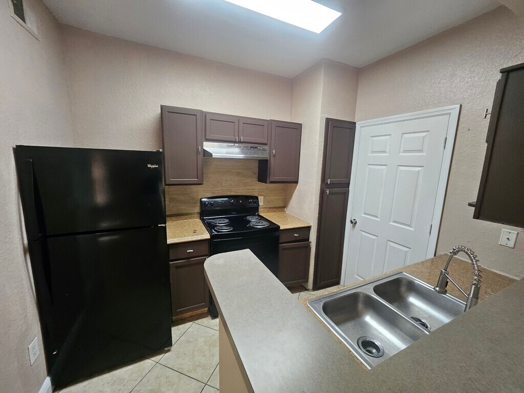Centrally located in Orlando 32839, THE GREENS CONDOS. Ground Floor Corner Unit with Patio. Open Living and Dining Room area with Tiled floors throughout, ceiling fan, sliding doors that leads to a private covered patio with storage. Kitchen with dark-wood cabinets, pantry cabinet, additional Storage Closet. Laundry Room with Full size Washer and Dryer. Spacious Bathroom with double doors for access from the Living Room and the Bedroom. Rommy Bedroom with carpet, Walk-in Closet and Ceiling Fan. Available for RENT