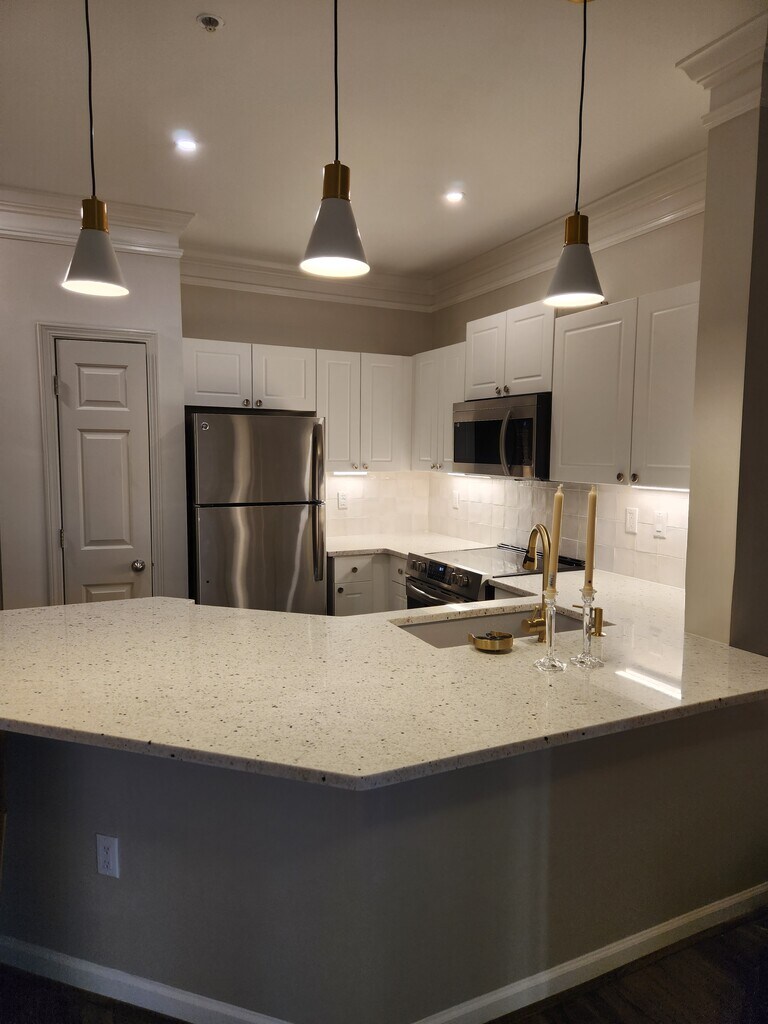 Renovated 1BR Condo/Gated/Gym+Pool/Prime ITP Location. Beautifully renovated 1 bdrm/1ba condo on 3rd floor of gated building. Located ITP by Johnson Ferry/285/400. Walk to restaurants. Quiet bldg. Gym, pool, elevator. Fully upgraded with modern home finishes throughout. Completely renovated kitchen, bathroom, flooring, ceiling, lighting. New ss appliances. Huge custom stone kitchen countertop. Designer fixtures, lighting in ceiling, pendants, indirect counter lighting. New wood flooring throughout. Luxury bathroom. Walk in 2 person shower. Dual vanity. Premium tile bathroom floor and walls. Large 2 person balcony facing sunset (tree tops in summer). Fireplace in living room and bedroom. Ring camera. Nest thermostst. Parking. Storage closet off balcony. Community Amenities: Gated access, pool, gym. Quiet well maintained property Carlyle Ridge. Qualifications: Min 680 credit application required. Ideal for professionals seeking a move-in ready home in one of Atlanta/Sandy Springs ITP best location and building.