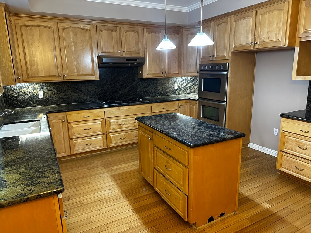Luxury Town home with Gourmet Kitchen with Top of the Line Stainless Steel Appliances. Fisher & Paykel Double Oven and 5 Burner Cook Top. Granite Countertops with Center Island, Dishwasher, Fridge/Freezer. Soap Dispenser, Window Blinds built in between the Dual Pane Glass Windows. 3 Bedrooms, 3 Bathrooms, Master Suite with walk-in Closet. Master Bathroom has Spa Bath and Shower, Travertine Floors, Ceramic Floors and Bamboo Wood Floors throughout. Dining Area in Kitchen plus Dining room, Wet Bar. Laundry room with Washer/Dryer Hookups and Walk-in Pantry. Private Yard