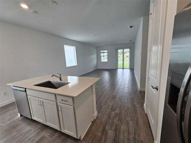 Brand new Single family. 55 and + community. Elegant 1,450 sq. ft. residence, 3 bedrooms and 2 bathrooms. The design features an open floor plan that seamlessly connects the kitchen, dining area, and Great Room, opening to a covered terrace for delightful indoor-outdoor living with Lake view. The kitchen is enhanced with White cabinets, while stylish tile flooring extends throughout the entire property. Two bedrooms offer accommodations for guests, and the private owner's suite is strategically placed at the home's rear. custom closets, epoxy floor coating (garage). The Clubhouse include swimming pool, clubhouse, tennis & pickleball. Internet included. Listed by: Golden Wizard Sun Realty Group