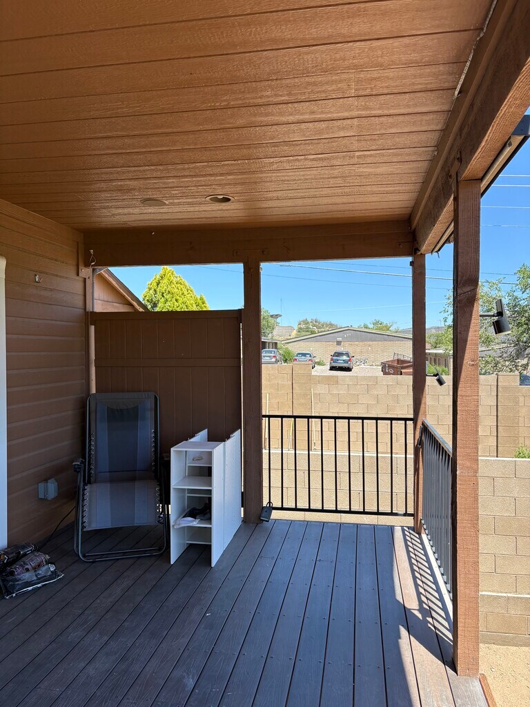 Clean OVERSIZED 1-Bedroom with Oversized Garage & Private Yard *AVAILABLE NOW* Approx. 721 sq. ft. of living space plus a huge 720 sq. ft. 1-car garage—perfect for workout area, hobbies, or a workshop! ? Features Include: BRAND NEW RANGE • 1 Bedroom / 1 Bath • Freshly painted interior • Beamed ceilings with ceiling fan • Wood laminate floors throughout • Central vacuum system • Refrigerator and washer/new dryer • Trex deck for outdoor enjoyment • Fully enclosed fenced yard • Large storage Tuff shed in private yard • Additional parking for vehicle or small trailer • Located at end of street • Views • All utilities paid except internet • Pets negotiable Ideal for someone seeking a low-maintenance home with extra space.