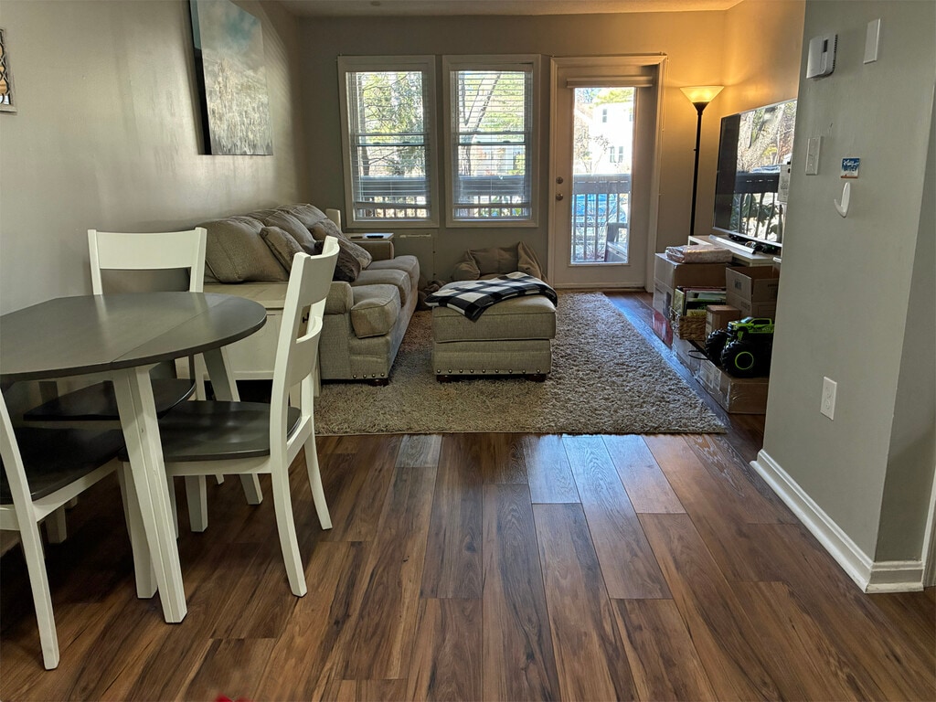 Edgewood Heights garden style 2-bedroom condo, 1st floor w/patio, large living room/dining combo (830 sq ft.) with community pool, clubhouse and tennis courts, close to downtown and highways. Family-friendly private neighborhood environment. Major improvements were made in 2021 including new kitchen cabinets, bathroom vanity, high end plank flooring, window treatments, lighting, outlets/switches and doors. Laundry in the building, off street parking. No Pets. No smoking or vaping. Tenant pays utilities. Good credit score required. No evictions or convictions.