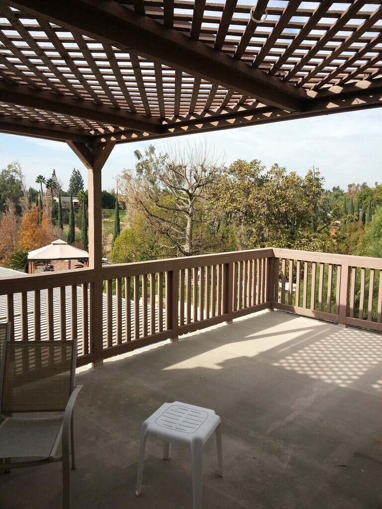 Located on a private drive in Horse country Yorba Linda, were on a 1 acre lot very quite,off street parking and rent includes all utilities including WIFI, Satellite TV with DVR. TV is not included. Pool use is included.We are a Ranch style house with the Studio Apt located above our garage with its own entrance, beautiful northern views from a 20X20 large balcony..