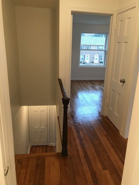 West side of Akron 2 bedroom, 1 bathroom townhouse apt. Appliances, central air, windows, garage doors and furnace all replaced within the last 5 years. Hardwood floors throughout with a spacious, full individual basement (not shared) with washer and dryer hook-up and canning/storage room. Easy access to shopping and expressway. Extra parking space behind the apartment + 1 spot in garage.