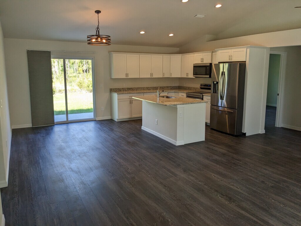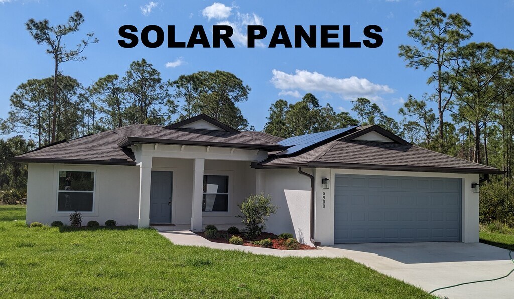 **Occupied, please don't disturb tenant** Save a lot on your Electric Bill. Only 2 years old this 2023 super energy efficient home with Solar and a Tesla/EV plug in the garage is available December 1st. This split plan 3 bedroom 2 bath home with 2 car garage will be your perfect home offering all of the latest conveniences. You'll save hundreds on your utilities and have a noticeably more comfortable home. The solar PV system powers the home and can charge an EV. Any excess power generated goes back to the grid as a credit to your bill. The luxury vinyl flooring throughout is in the perfect grey color, and is sure to compliment any furnishings. Vaulted ceilings in the main living area and kitchen give a roomy feel. Kitchen includes stainless steel appliances, a french door refrigerator with water and ice dispenser and a bottom freezer, glass top range with dual door, dishwasher, built in microwave, beautiful cabinets, granite countertops and a large island with breakfast bar. Ceiling fans in all rooms and elegant light fixtures in the main area. The Master Bedroom is big enough for a king size bed, has beautiful plank tile, two closets, two sinks, a private toilet room & a linen closet. The laundry room has washer/dryer hookups and cabinets that match the kitchen. There is also a large screened in patio. Hurricane rated impact windows & Doors, a garage door opener with exterior pin pad and Florida friendly landscaping complete this beautiful home. Not in a Flood Zone. Local Manager/Owner.