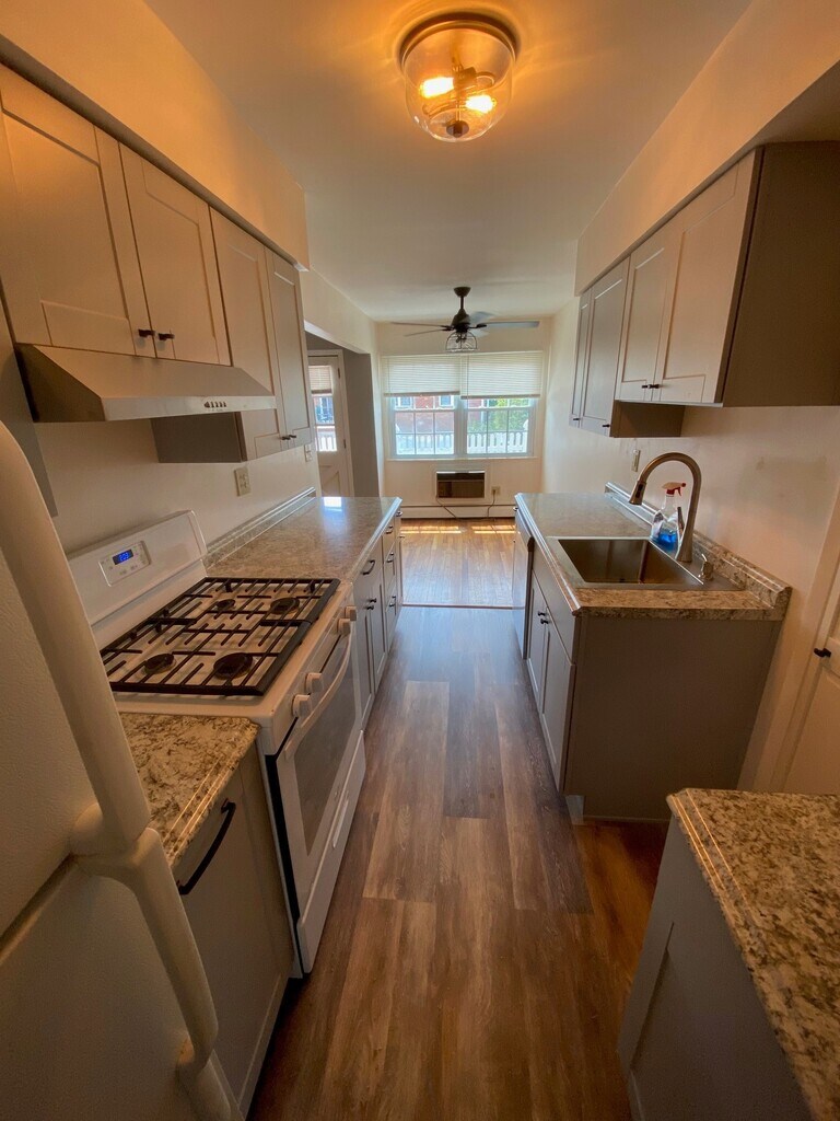 This one-bedroom unit features a new kitchen with plenty of cabinet and counter space, a dishwasher in addition to fridge and stove and new flooring. The bathroom features new cabinetry, light and water fixtures. The unit also features hardwood flooring throughout the unit and is light and bright.