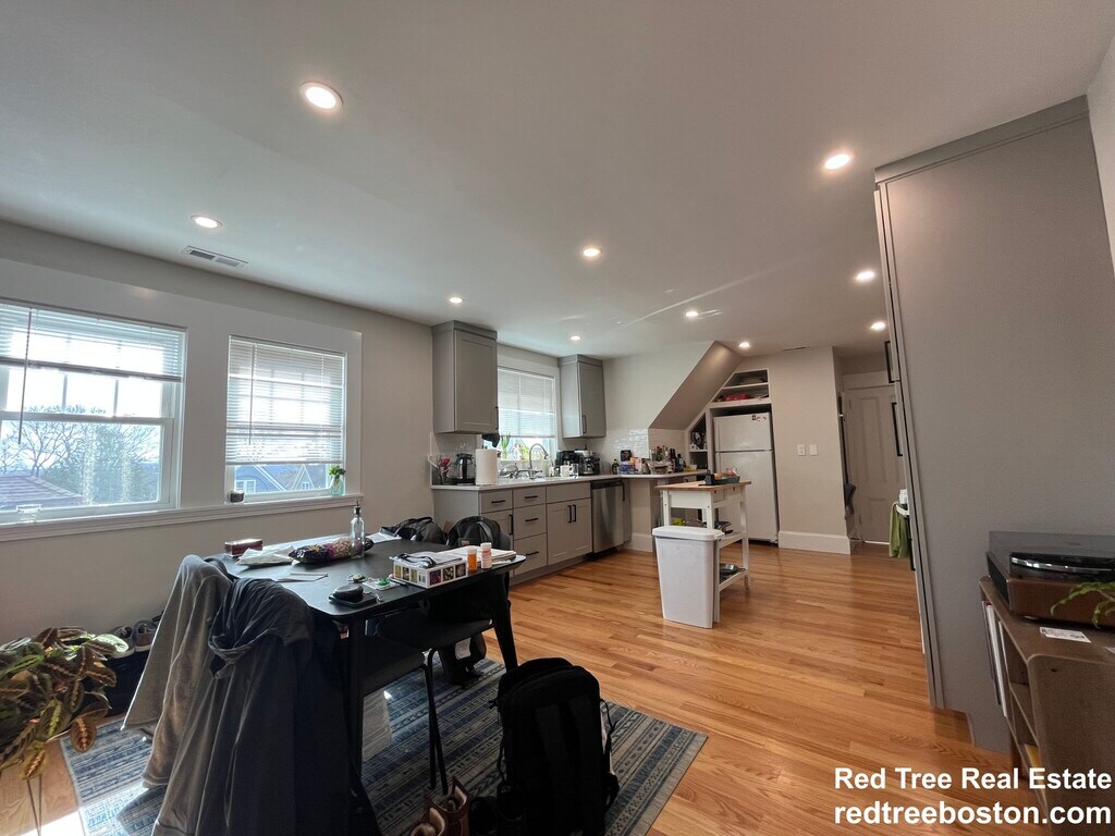 Apartment is located on the 3rd floor in a wonderful Three Family home. Large open floor plan, Living Room Large Eat-in kitchen with new cabinets, dishwasher and disposal, Modern bath, Two Large Bedrooms with huge closets! Plus an additional room that can be used as an office, Washer and Dryer in the basement, Basement storage available, Gleaming Hardwood floors, Brand New storm windows, Walking distance to the commuter rail and the Arnold Arboretum! cats allowed