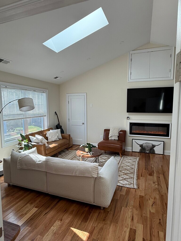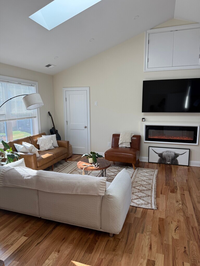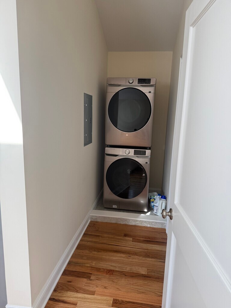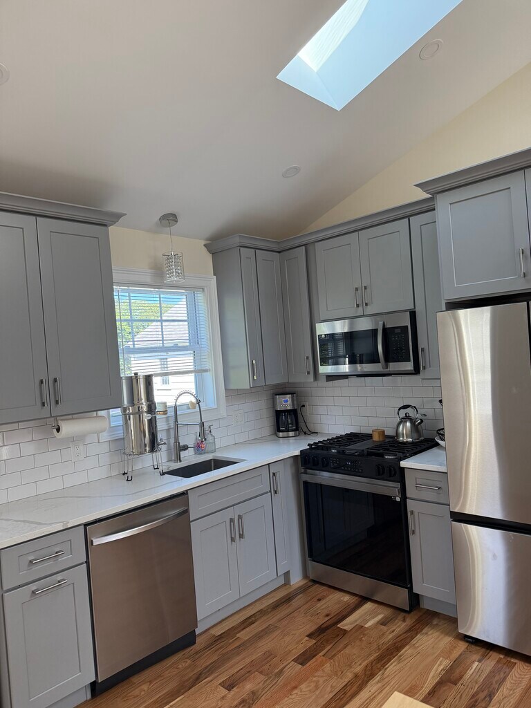 New Construction - spacious, vaulted-cathedral ceilings throughout the apartment. Stainless steel appliances, including dishwasher and microwave. Subway backsplash in kitchen. Natural gas heat, gas cooktop range and gas dryer. Central AC. Hardwood floors. Blinds, fireplace and 60" flatscreen wall-mounted TV included. 1 mile to East Norwalk Train Station. Center City Norwalk, East Norwalk at City Hall. Must be seen. Very charming, comfortable, serene and quiet. Perfect for professional working from home. 1 year lease with right to renew