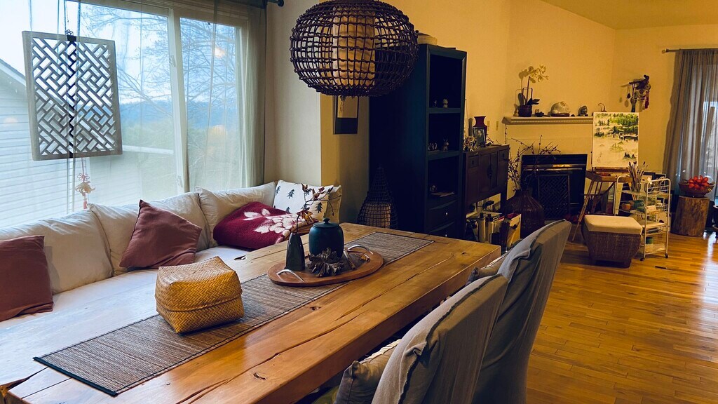 Single-family house located in a safe and scenic neighborhood. Breathtaking views from the porch. Large living room and kitchen with plenty of storage space. Three bedrooms and two and a half bathrooms. Two separate suites on each floor. The first floor features a full kitchen, and there is a smaller kitchen on the basement floor as well. Available now. (No furnishing).