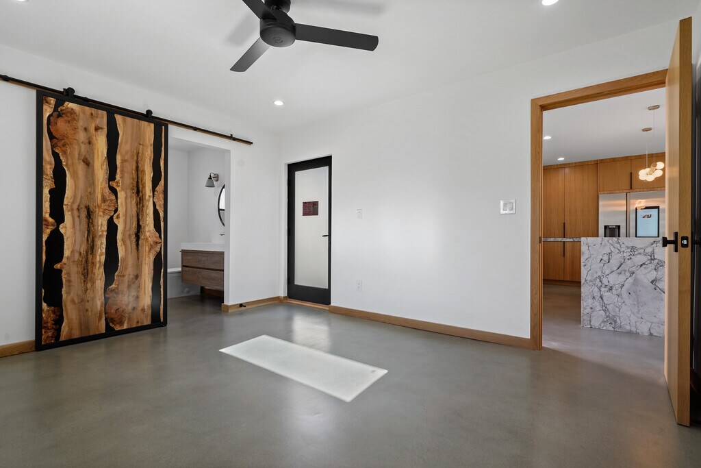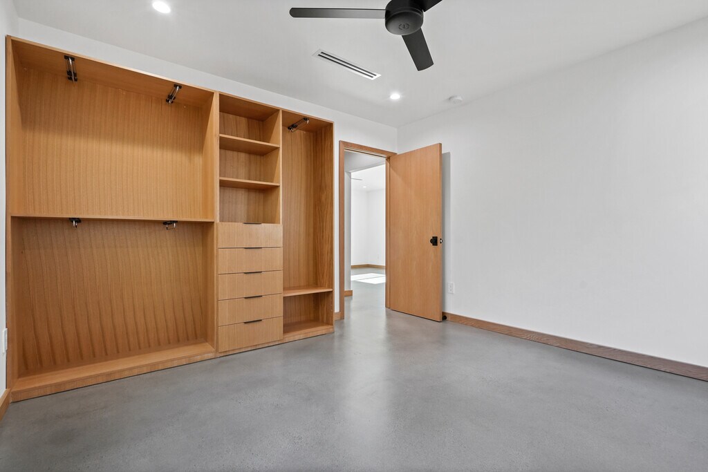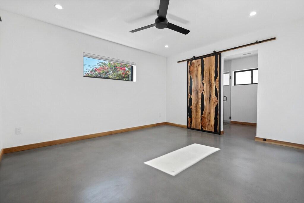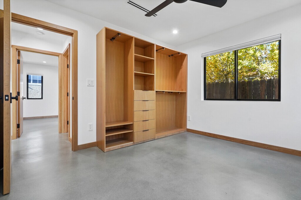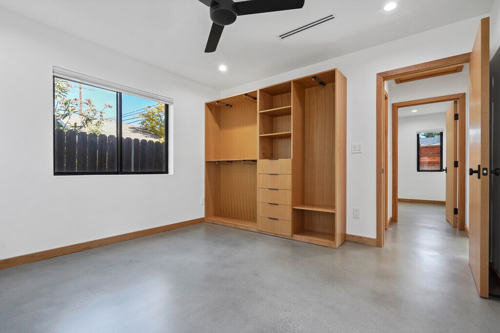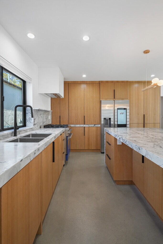 Brand new high end home. This is a custom built back house with private parking and entrance. 1200 square feet of living space and 3BR 2BA including a luxe primary suite with free standing tub. Gorgeous kitchen with white oak cabinets and Brazilian quartzite stone, all new top end appliances including professional range and smart fridge, and large kitchen island. White oak trim, doors, and built-ins throughout the home contrast nicely with polished concrete flooring. Utility room with laundry and extra storage. Huge windows throughout create a light and bright atmosphere, and the design maximizes privacy in every room. Home is built on smaller lot and has two private entrances as well as one private gated parking spot, and ample street parking with easy access. Private outdoor space includes front porch deck and a quiet, landscaped courtyard. Tenant pays all utilities, owner to provide gardener.