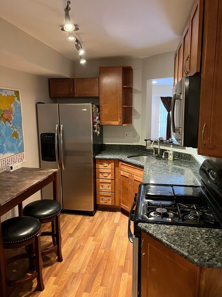 Beautifully Updated Top-Floor 2BR in Prime Glenview Location Move right into this bright and spacious 2-bedroom, 1-bath top-floor condo featuring a fully renovated kitchen with brand-new stainless-steel appliances, granite countertops, and an open layout with gleaming hardwood floors throughout. Natural light fills the home, highlighting two generously sized bedrooms, including a primary suite with a walk-in closet. The updated bathroom showcases elegant marble finishes for a refined touch. Enjoy year-round comfort with central A/C, relax on your private balcony, and benefit from two assigned parking spaces included. Ideally located in an award-winning Glenview school district with convenient access to shopping, dining, parks, and commuter routes. Move-in ready and available now schedule your showing today!