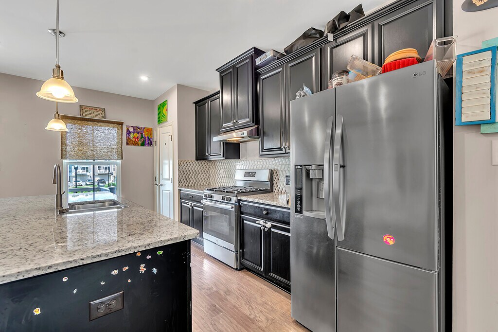 This approximately 1,700 square foot townhome features three bedrooms and three and two half bathrooms. The home offers granite countertops for the kitchen, complemented by stainless steel appliances and laminate floors. On the main level, there is a full bathroom, providing convenient access. The home also boasts a two-car garage and a private deck, offering an ideal space for outdoor relaxation. Additionally, the property backs to a nearby park, providing easy access to green space and recreational opportunities. This residence is conveniently located near a train station, offering accessible transportation options. The thoughtful layout and high-quality finishes make this townhome an attractive option. Just 5 mins to park and ride including ferry, train and bus.