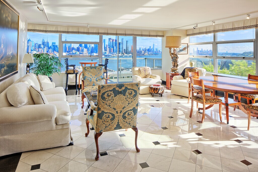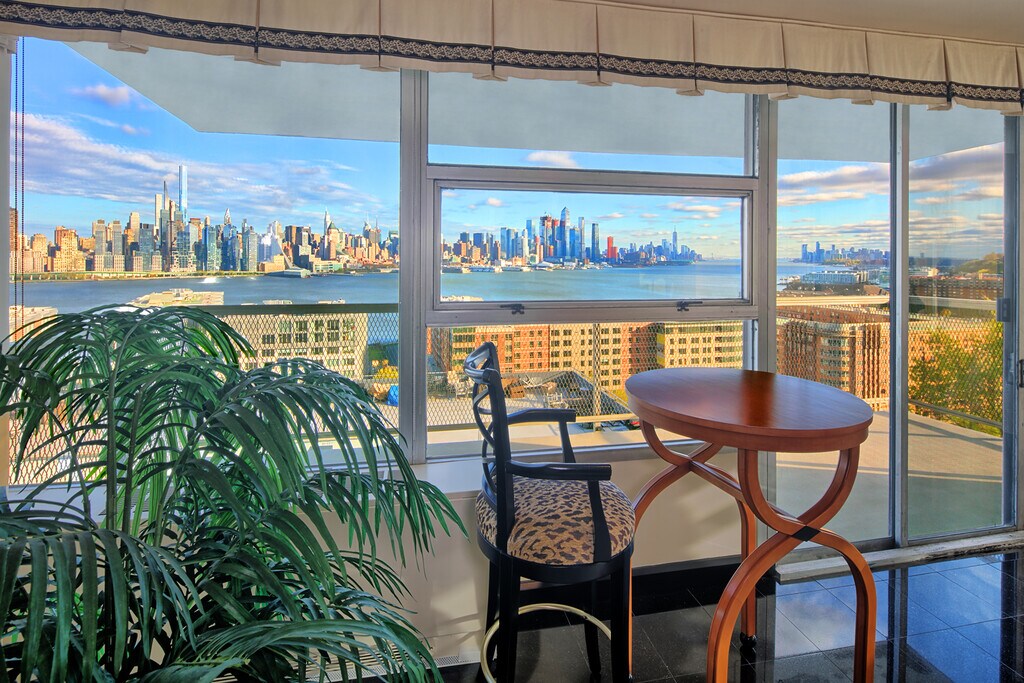 World Class Iconic NYC Skyline views over the River are yours in this Gorgeous Coveted So East Corner 2/3 Bedroom 3 Bath Luxury Rental with New Balcony Oasis. An Idyllic Bluff top location benefits Endless Awe-Inspiring Panoramic views of the glistening Hudson River & Glittering countless Landmark Sites from Empire State, Hudson Yards to Freedom Tower et al. Rarely avail. for Rent is the coveted South East Corner (H line) offers 1750+-sq. ft. of Luxury Living space. Formerly a 3 Bedroom, this splendid floor-plan was merged to a supersized 2 Bedroom, with a King sized Master Suite. As you enter, lavish custom updates & finishes abound from marbled flooring, to solid wood veneer doors, built in cabinetry, pretty accent walls. Beyond the formal entrance, greeted by captivating walls of glass & glowing light from the grand corner living/Dining space. Perfect for both entertaining & comfortable living whether working from home in or outdoors. Having a Balcony is a true luxury, especially a private corner with Spectacular Sparkling New York City Skyline views. The windowed open chef's kitchen is thoughtfully designed; abundant custom cabinetry, granite counters & serving bar, a pocket door offers the chef total privacy. The Guest 2nd Bedroom offers an en-suite Marbled full bath. The Enormous Serene Master Suite captivates with Blissful views a lounge area & room for a home office. A custom designed large walk-in-closet will satisfy your wardrobe & storage needs. The Ensuite Modern tiled Master bath offers a double vanity, glass stall shower & useful dressing/make up station. Discover Tower West a full service luxury Condo building with Amenities: 24hr concierge; outdoor Pool, Fitness; Sauna; Patio Lounge w/ grills; Live-in Super; Mgmt. on site. Rent incl: ALL UTILITIES: Heat/Electric;Gas; Central A/C;Water+ 1 car parking*, New Washer/Dryer in unit. A stellar BLVD East Location, surrounded by every convenience shopping, fine dining, eateries. A 5-Mile Dream Commute to NYC is right outside your door, direclty in front of the building. Office Exclusive Listing, Tenant must have 700 min credit score & a 225K Min combined Verified Income. There is a strict No Dog Policy in the building, however Service dogs and Cats are welcome. Contact Angela for more information or to schedule a Tour-Don't Miss Out!